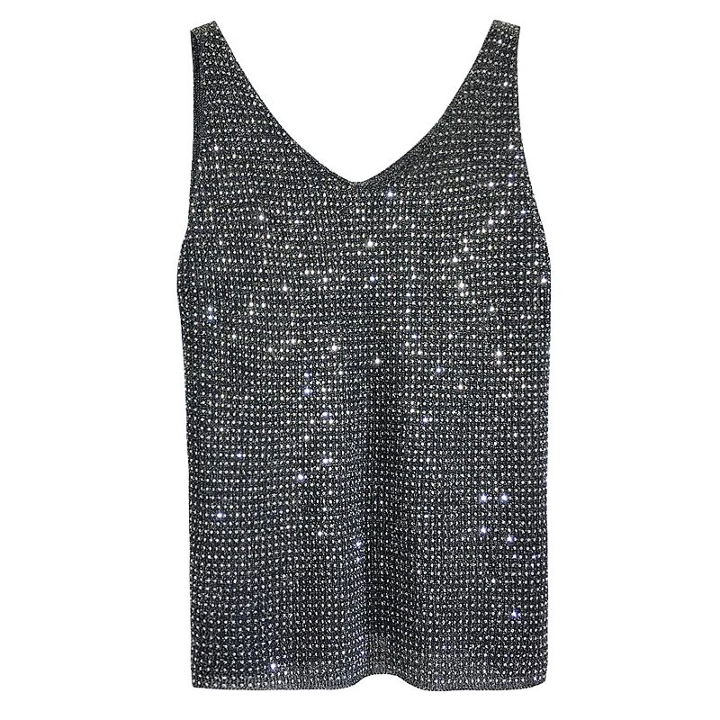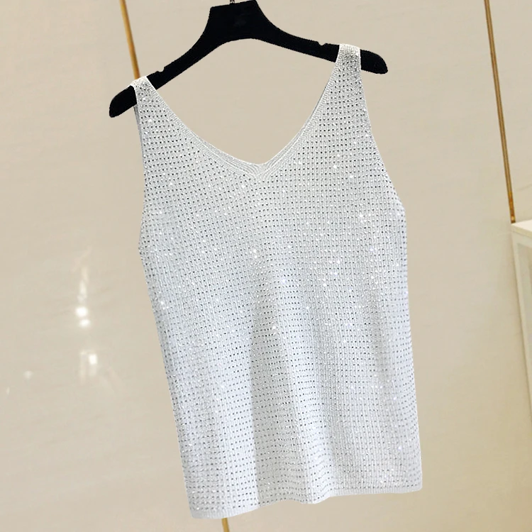 Стразы вязаная нижняя рубашка без рукавов Яркий шелковый жилет топы...