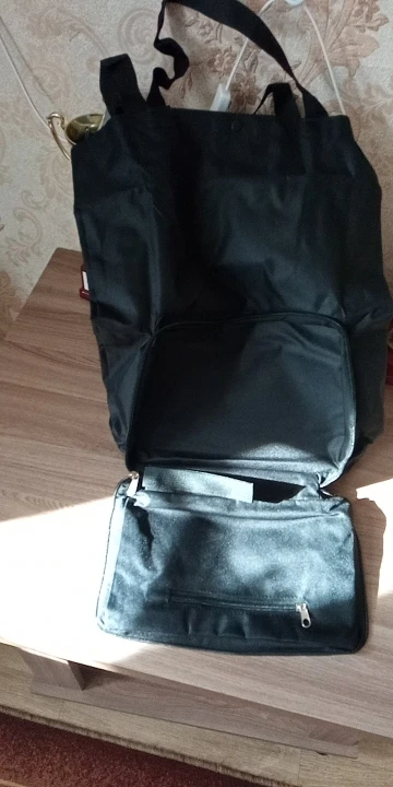 Доставка быстрая, сумка разворачивается в большую очень удобно. Не надо выкладывать вещи