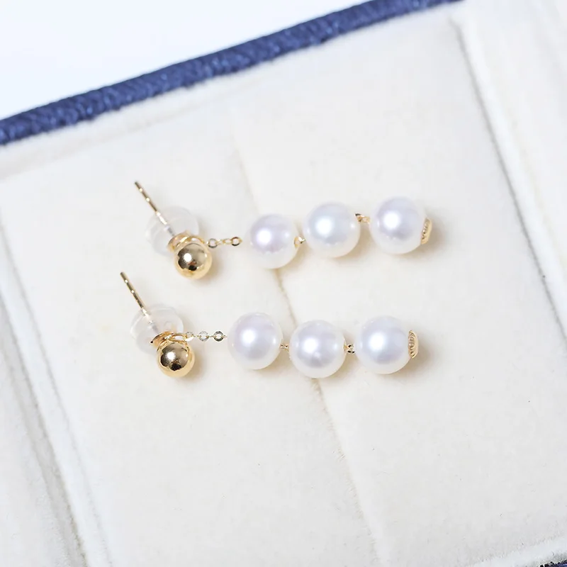 YS 18 K твердые золотые 5-6 мм натуральные культивированные пресноводные жемчужные серьги, изящные украшения