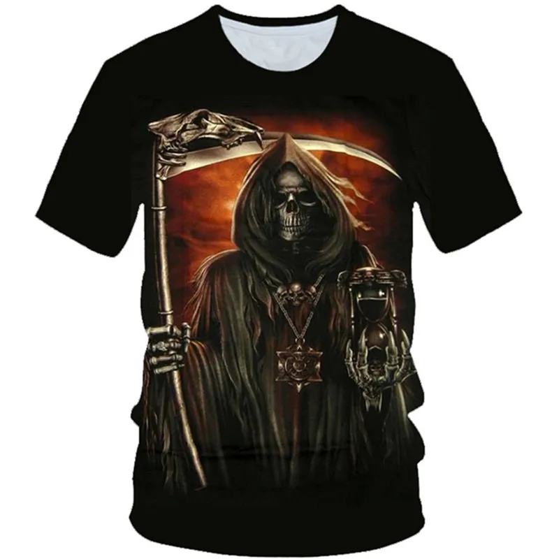 Детская 3D футболка на Хэллоуин, футболка для мальчиков и девочек с рисунком черепа, серпа, огня, Детская уличная одежда с принтом скелета на день смерти, футболки, топы, 2019