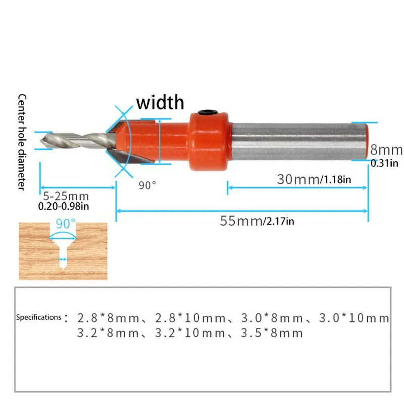 Особенности: 1. С прочной легированной головкой, трудно скользить и ржаветь. 2. Улучшенная вращающаяся лента облегчает удаление чипа. 3. Стальной корпус обеспечивает ощущение гладкой и уютной руки. 4. С универсальной круглой ручкой, идеально подходит для DIY деревообработки. Технические характеристики: Тип изделия: сверло с потайной головкой Материал: сплав, сталь Цвет: оранжевый + серебристый Тип хвостовика: круглая ручка Тип охлаждения: внешнее охлаждение Область применения: плотность доски, твердой древесины, фанеры, ДСП Диаметр хвостовика: 8 мм, 10 мм Диаметр центрального бит: 2,8 мм, 3 мм, 3,2 мм, 3,5 мм Посылка включает в себя: 1 * потайной сверло