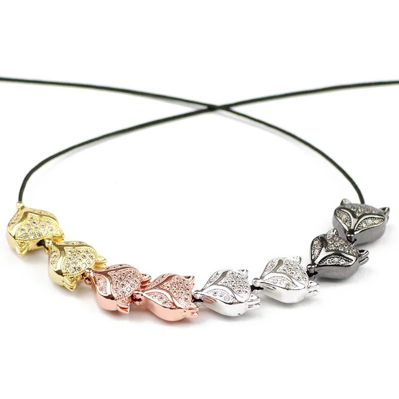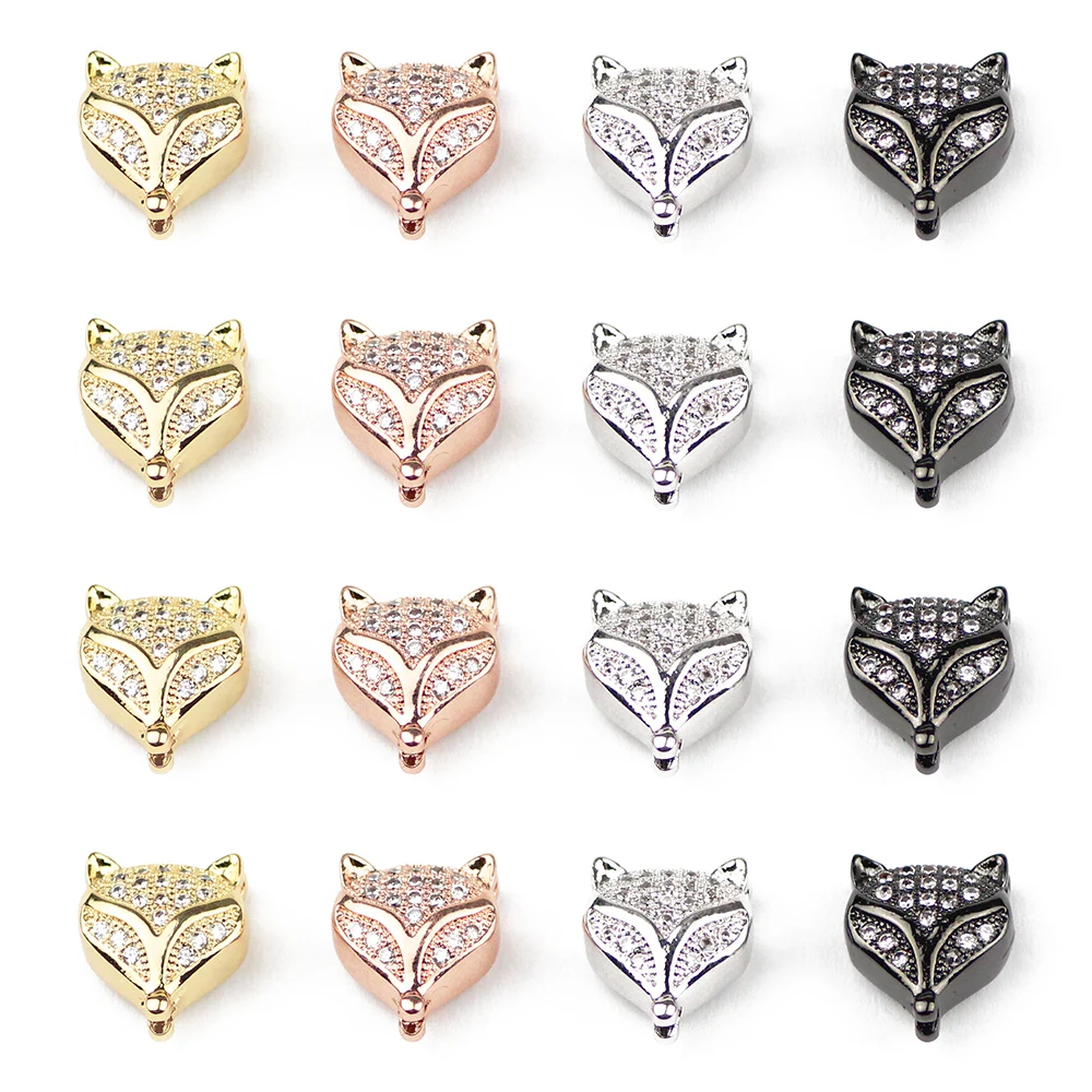 Подвеска в виде лисы медные бусины спейсеры 4 шт. микро-паве циркониевые аксессуары в виде животных свободные бусины для изготовления ювелирных изделий браслет DIY фурнитура