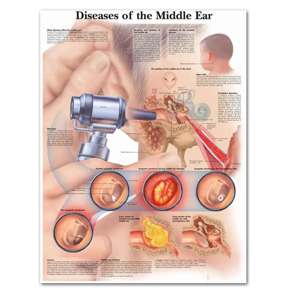 Картина Здоровье среднего уха, холст с печатью постера, настенная живопись для медицинского образования, для докторов, офисных классов