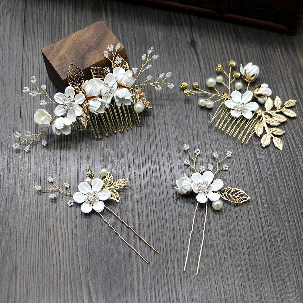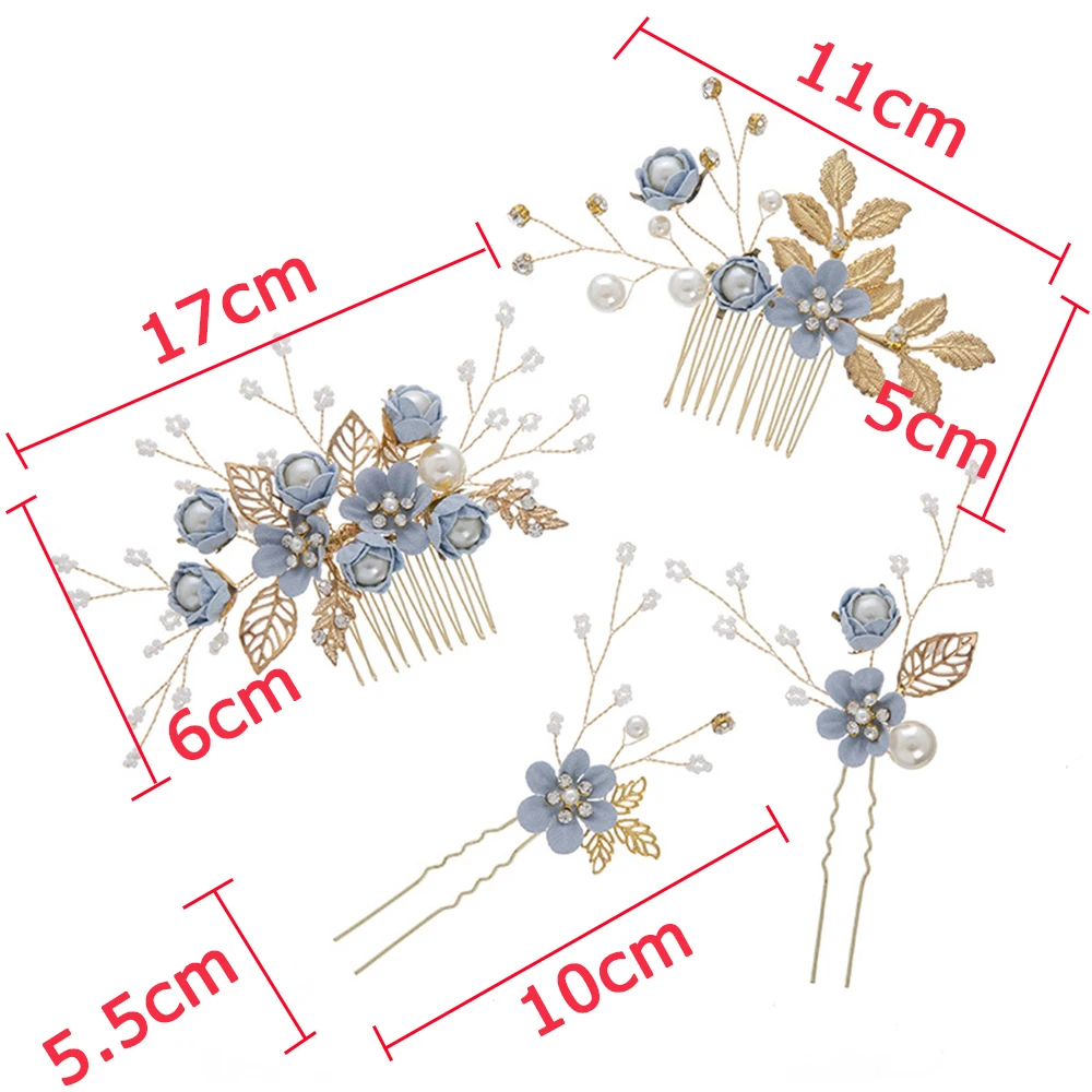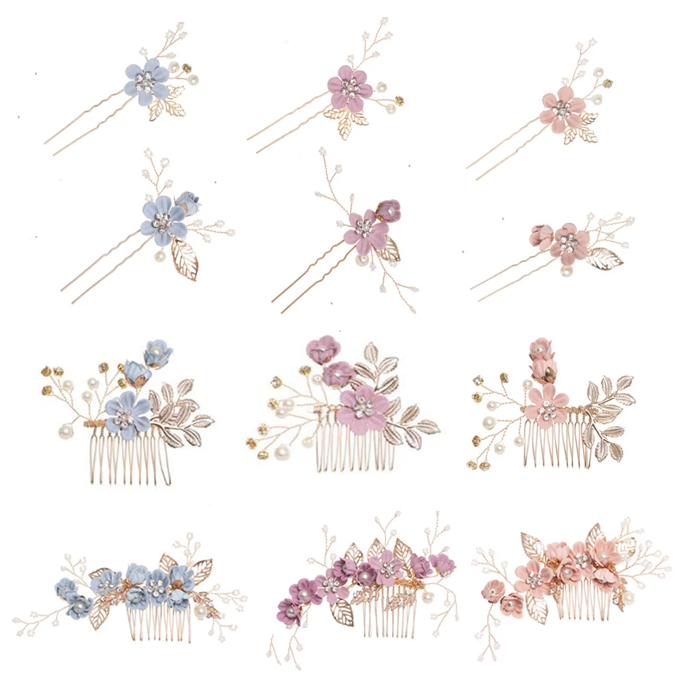 Заколки для волос AINAMEISI, модные украшения, шпильки для волос с синими, красными, розовыми цветами, золотыми листьями, аксессуары для волос на выпускной, свадьбу