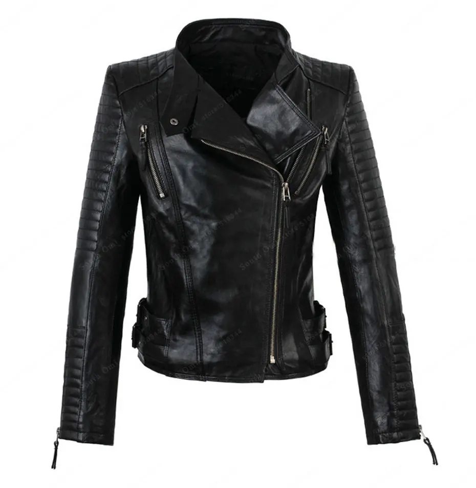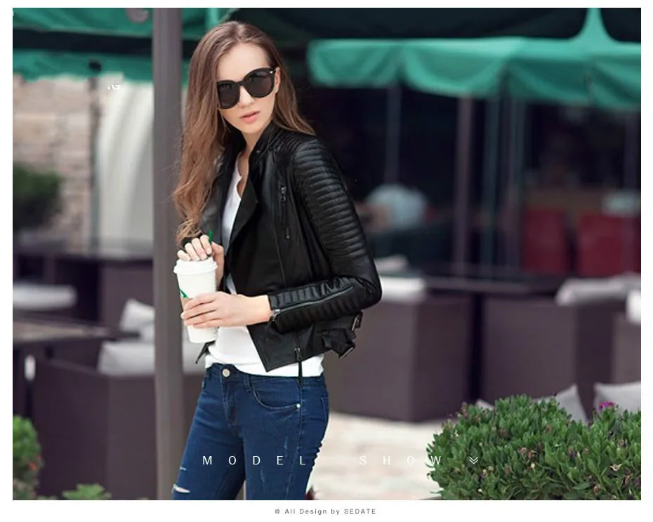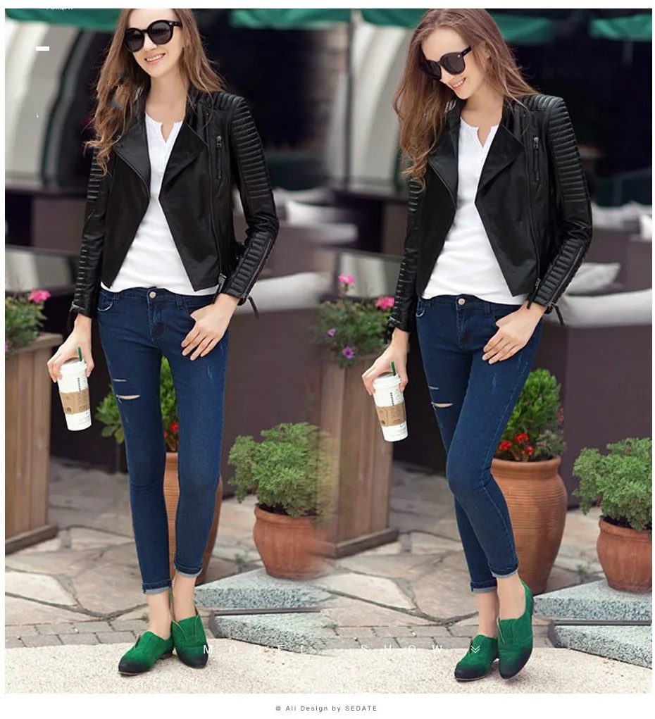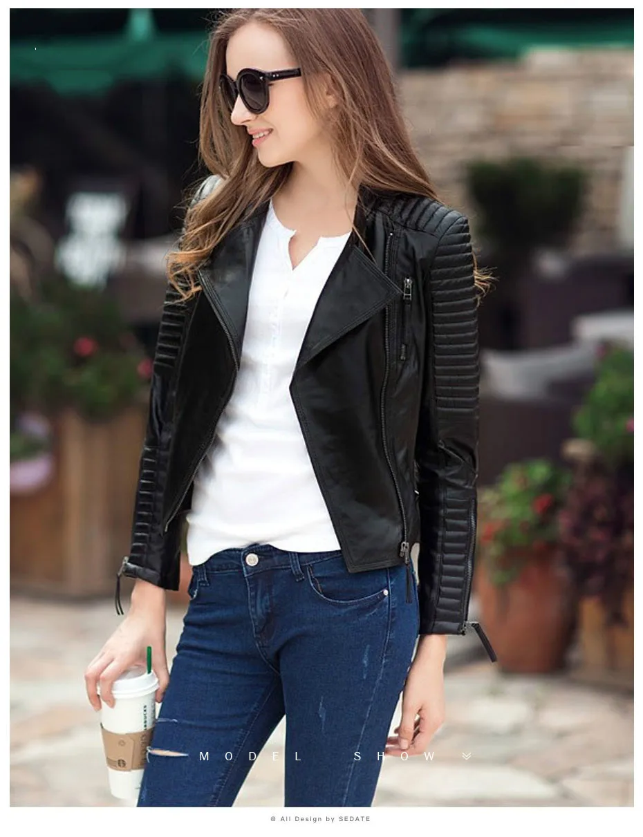 Куртка женская осенняя из искусственной кожи, с отложным воротником, на молнии