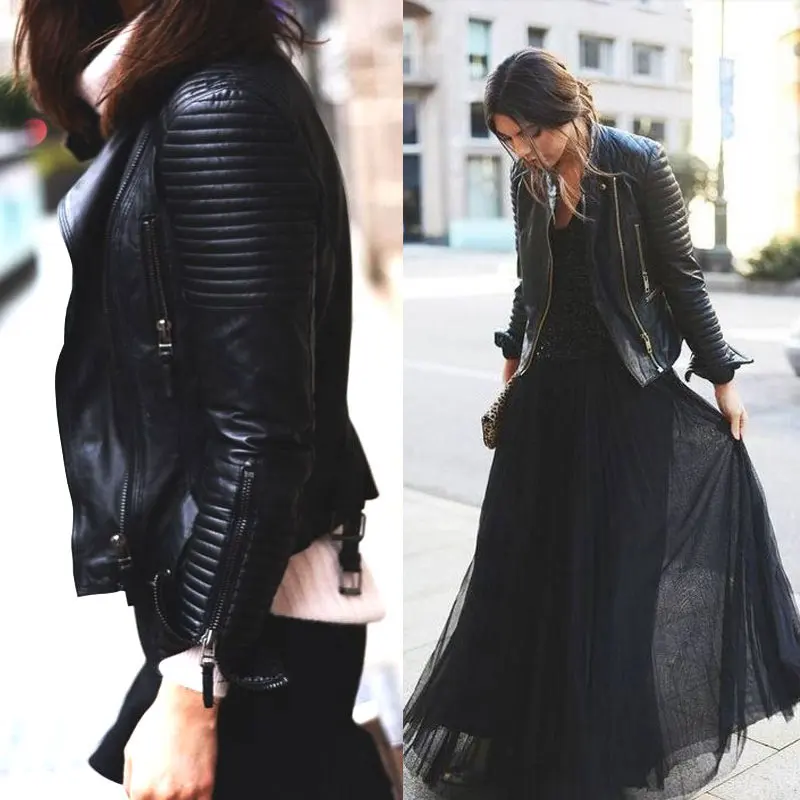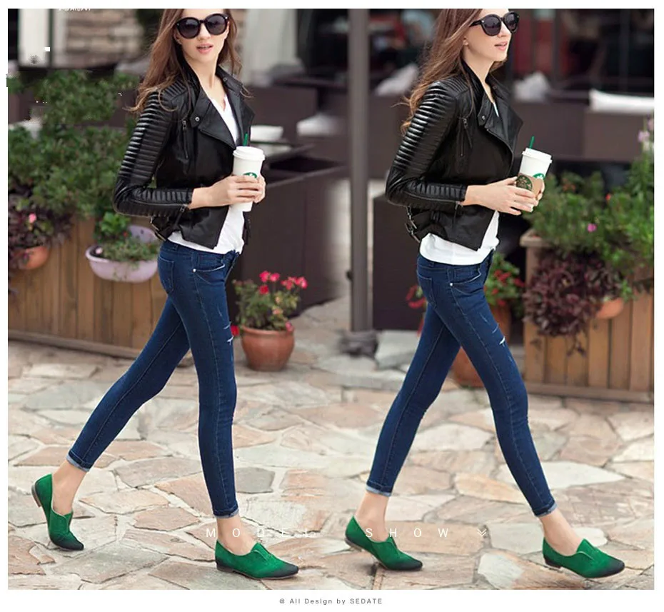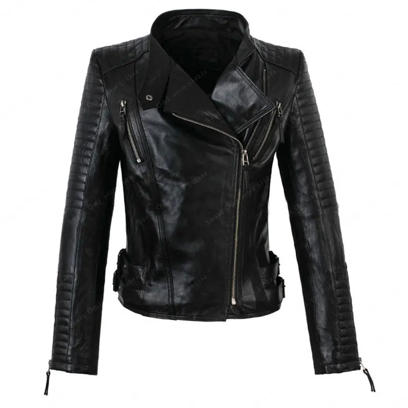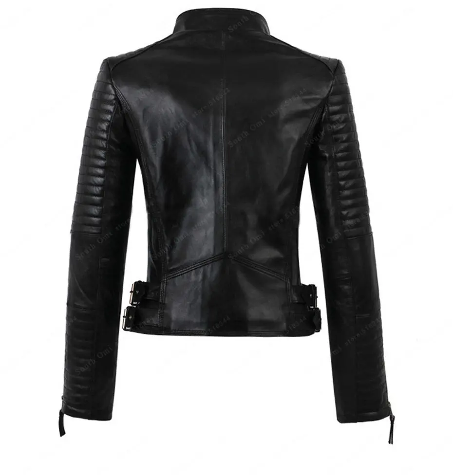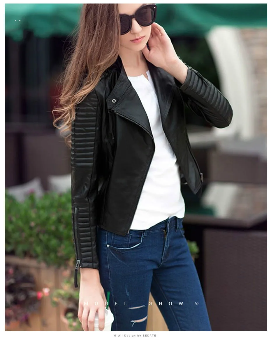 Куртка женская осенняя из искусственной кожи, с отложным воротником, на молнии