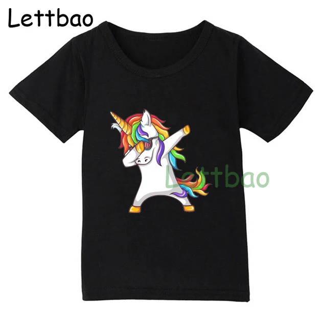 Для маленького мальчика, летняя детская футболка с короткими рукавами и детские вытирая Единорог черные футболки для маленьких мальчиков, футболка для девочек, топы, футболки, От 2 до 9 лет