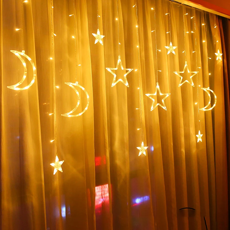 гирлянда на окно ЕССШАВеликобритания вилка гирлянда Луна Звезда лампа Сказочный занавес свет украшение Рождественские огни Праздничные огни Sting для нового года свадьбы
