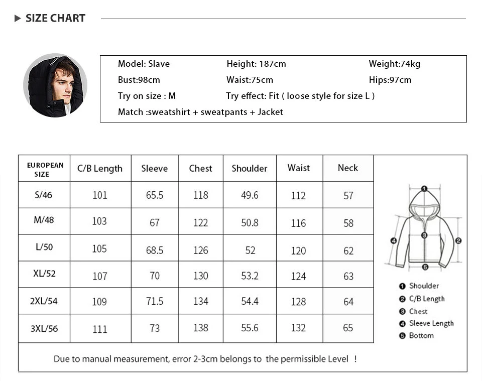 К качеству претензии нет. На рост 170 и вес 80 размер L подошёл нормально, не тесно, но впритык. Я относительно маленького роста, поэтому, если бы взял посвободнее размер XL, мне было бы уже явно длинный пуховик. В отличии от большинства одежды на Али, эта фирма шьёт по европейским размерам, высоким людям рекомендую...