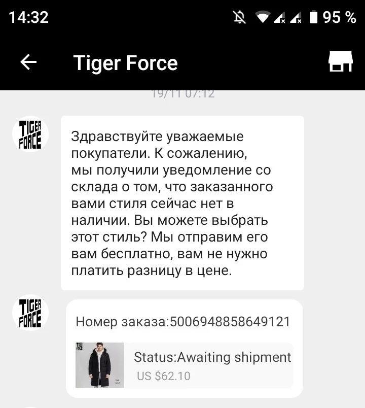 Вначале наше общение с продавцом было вполне нормальное, я получила совет по размеру, но потом началось.. После оплаты он написал, что выбранная вещь отсутствует на складе, попросил выбрать другую модель. Муж согласился, хотя хотел именно заказанный пуховик. Договорились на тот же размер. В итоге пришла вещь на размер меньше. Т.к. живём на севере, нужна возможность одеть под низ что-то теплое, но увы. Итак сомневались, выбрать L или XL, а получили М. С возвратом связываться побоялись, да и обидно. И так пошли навстречу с заменой модели, столько ждали посылку, и нате. Продавец оправдывался большим потоком товара, предложил компенсацию 5 долларов (смех). Открыли спор,затребовали 25% от стоимости. Продавец начал торговаться, предлагая уже 10 долларов. Арбитраж Али встал на мою сторону, вернули 1200 от 4800. Не стала ставить оценку ниже, т.к.вещь фабричная, хорошего качества. А вот обслуживание и отношение к клиентам заставляет желать лучшего.