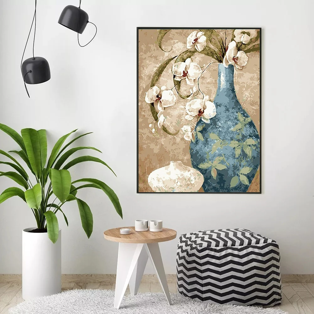 HUACAN картины по номерам картина маслом цветы расписанная вручную ваза раскраска наборы для рисования холст сделай сам украшение дома подарок