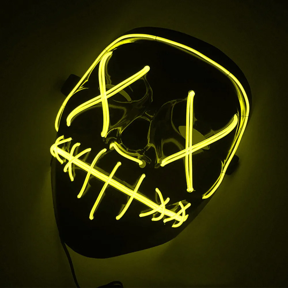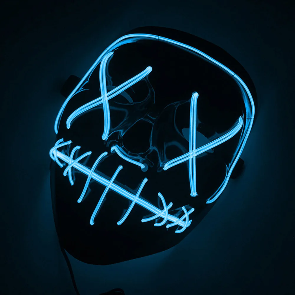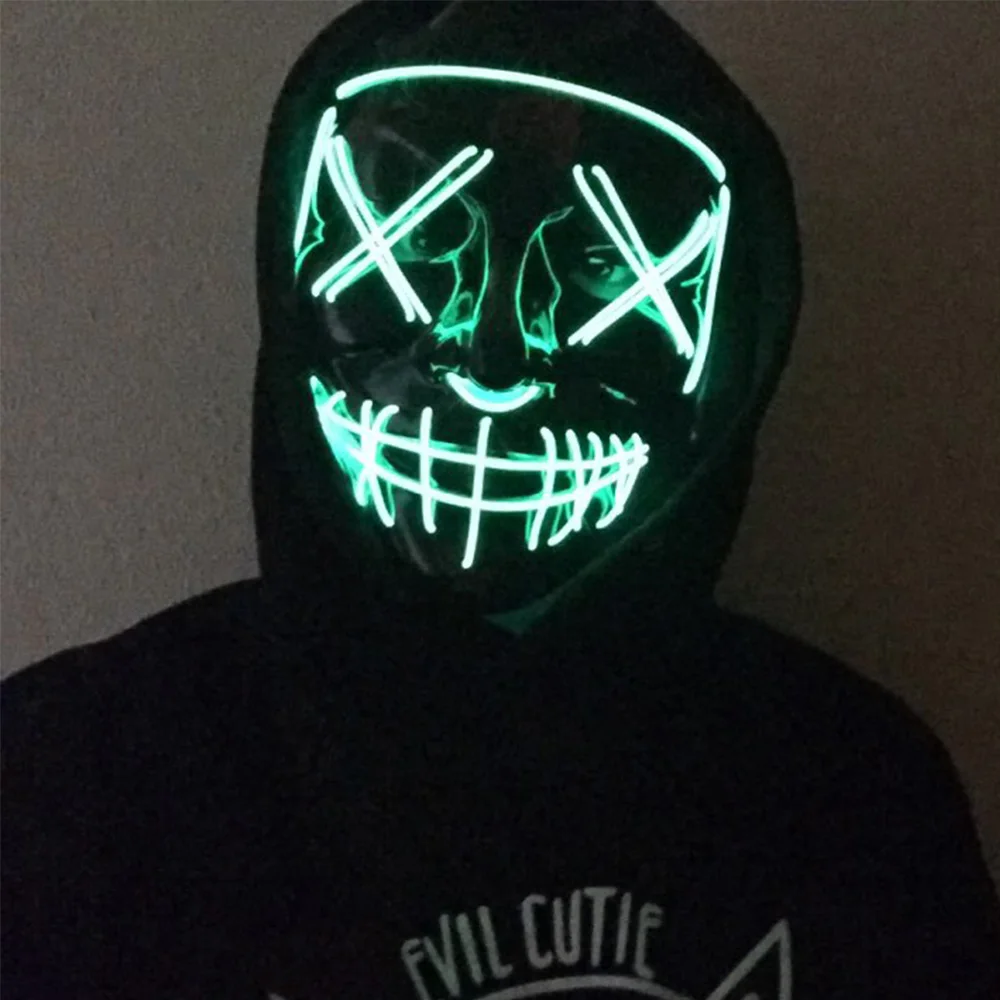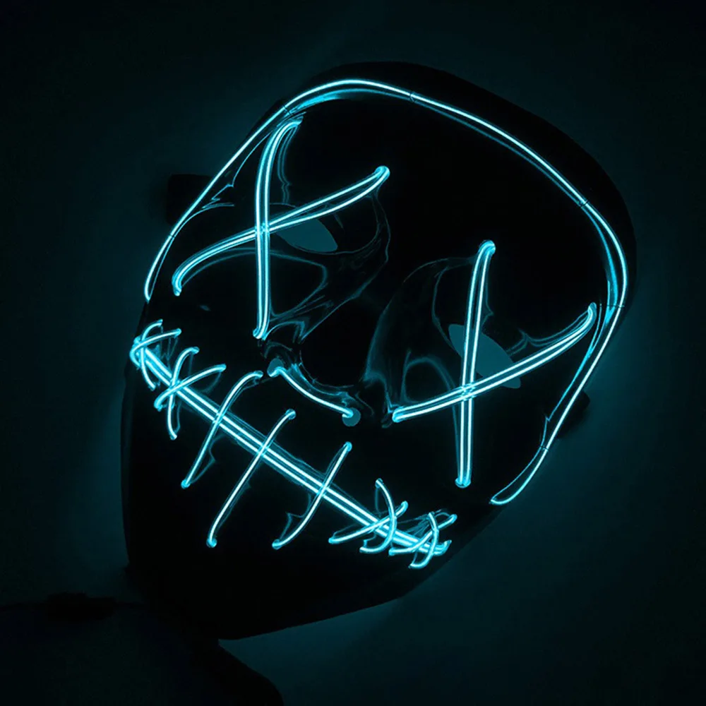 Хэллоуин страшная маска для сшивания маскарадный светодиодный костюм маска EL Wire светильник