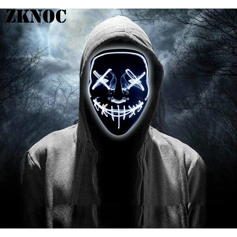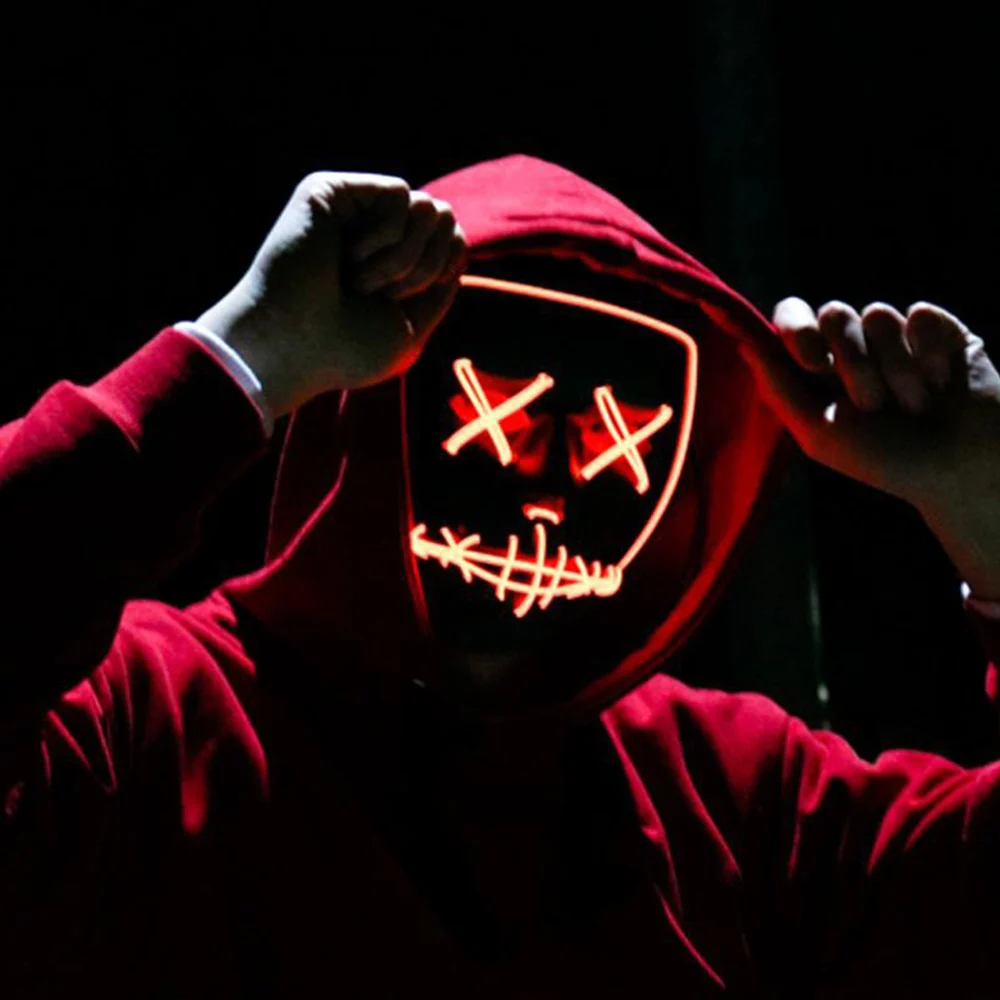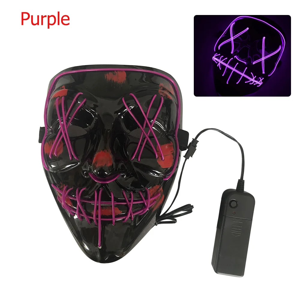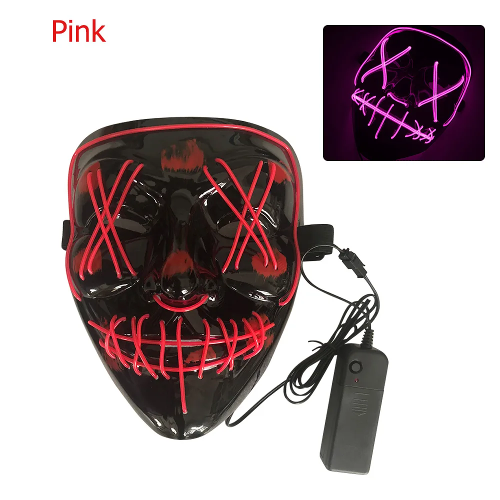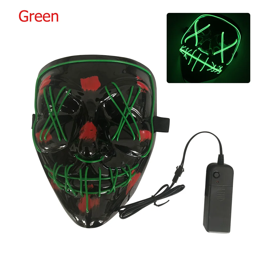 Хэллоуин страшная маска для сшивания маскарадный светодиодный костюм маска EL Wire светильник
