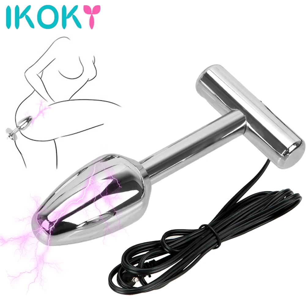 Анальная пробка IKOKY, Металлические анальные шарики для стимуляции точки G, эротическая секс-игрушка для женщин, электрошоковый массаж простаты для мужчин