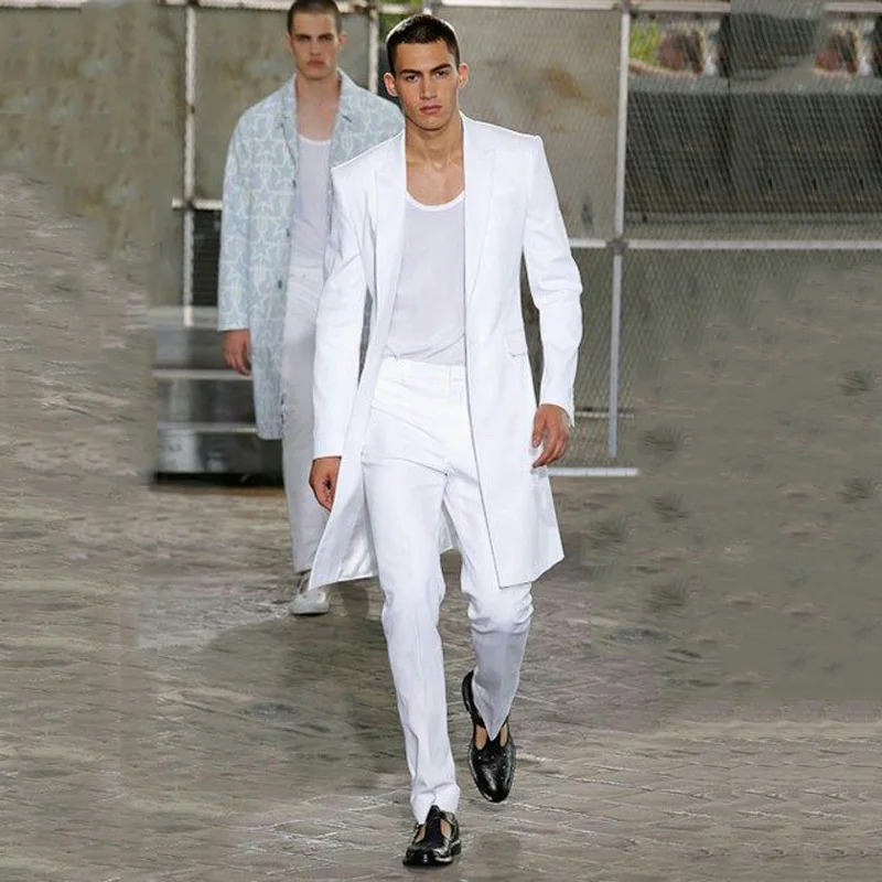 Мужской костюм, длинное пальто, белые смокинги для жениха, блейзер ...