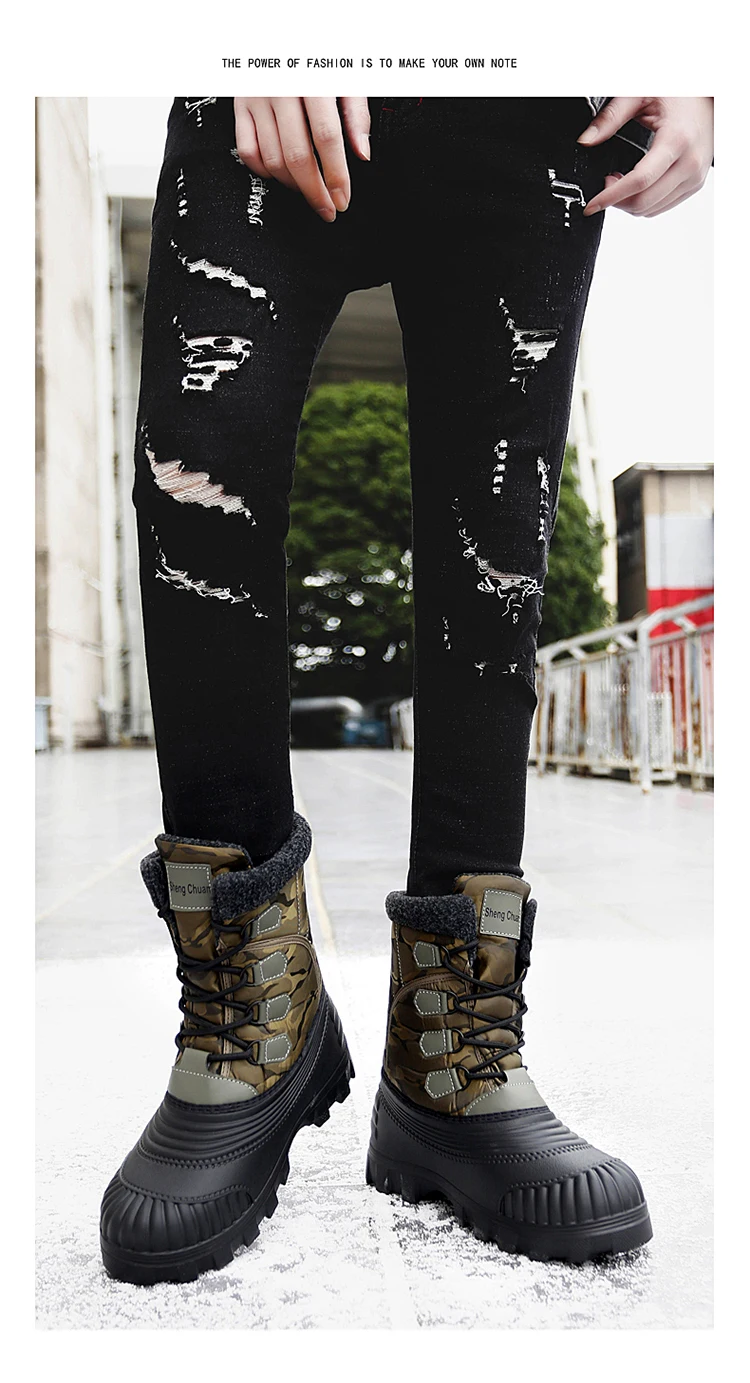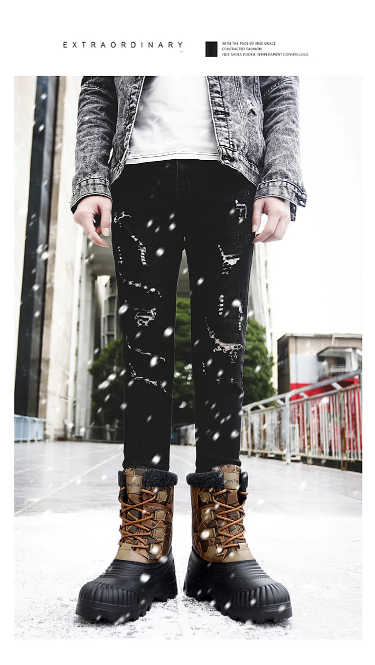 Мужские зимние камуфляжные ботинки MARSON, черные ботинки с бархатным утеплителем, нескользящая Уличная обувь для альпинизма и горы,