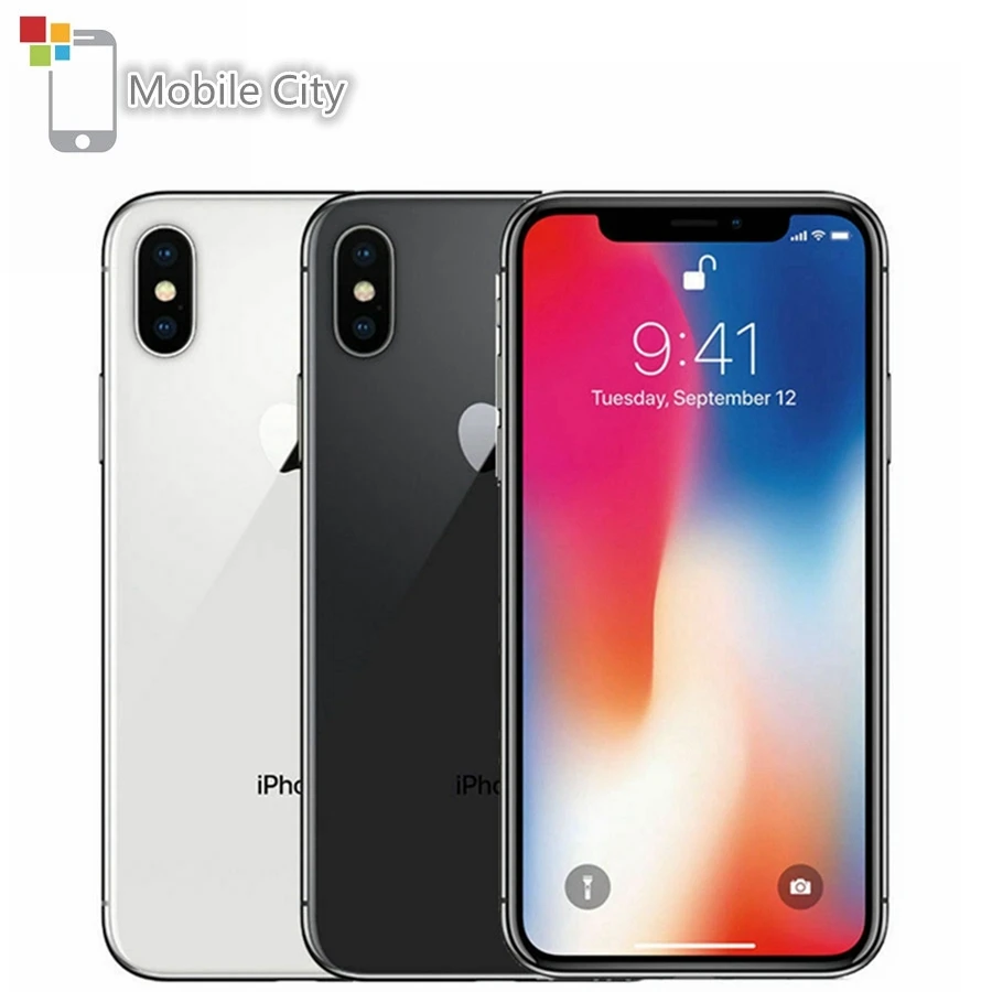 Разблокированные мобильные телефоны Apple iPhone X, 4G, LTE, 64 ГБ256 Гб ПЗУ, 3 Гб ОЗУ, шестиядерный, 5,8 дюйма, iOS, 12 МП, двойная тыловая камера, смартфон с функцией распознавания лица