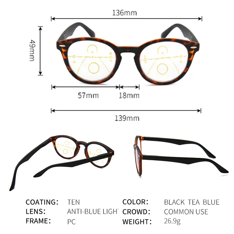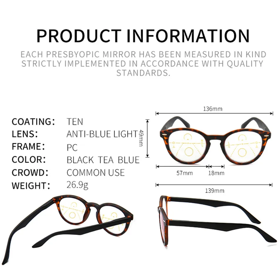 Очки для чтения iboode с многофокальными линзами для мужчин и женщин, с защитой от синего светильник, при пресбиопии, в стиле ретро, с круглой оправой + 1,0 до 3,0