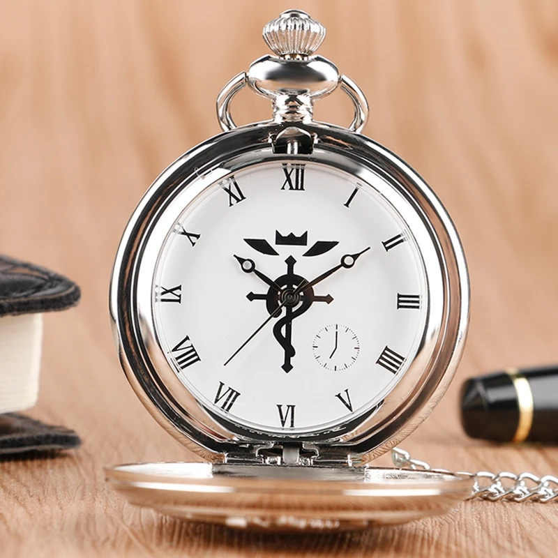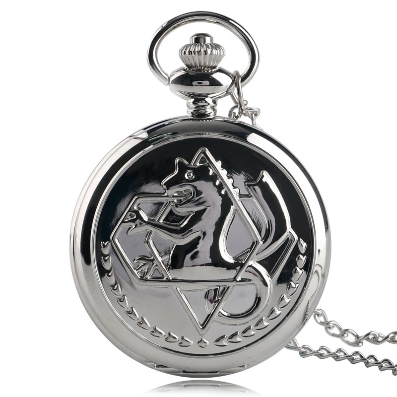 5 шт.компл. цельнометаллические серебряные часы-Алхимик с подвеской Мужские кварцевые карманные часы японское аниме ожерелье часы-брелок высококачественные подарочные наборы