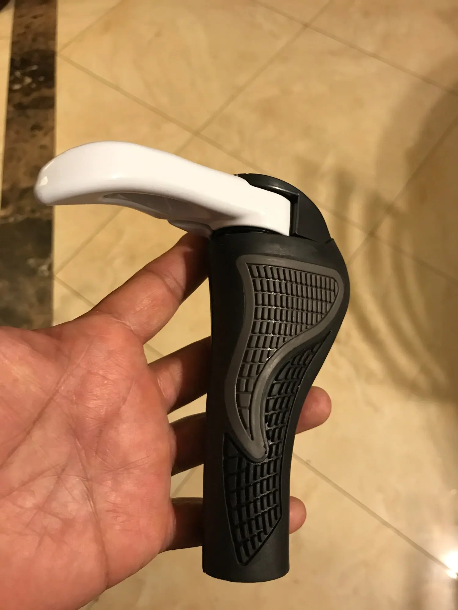 Ручки выглядят супер, не крутятся. Хват рук на велосипедных ручках удобный. Регулировка, крепления - на высоте. Все удобно и просто! Спасибо продавцу.