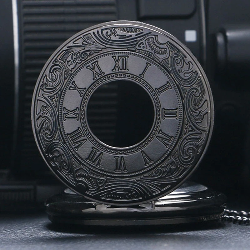 Часы карманные кварцевые, бронзовые, черные, с римскими цифрами