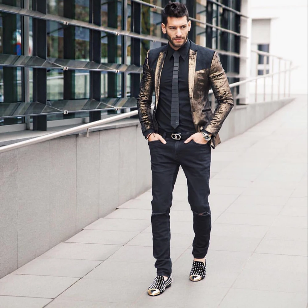 Новые мужские туфли из расшитой блестками ткани роскошные модные му...