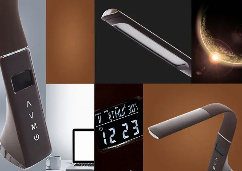 Настольная лампа, светодиодная, перезаряжаемая с сенсорным затемнением и будильником