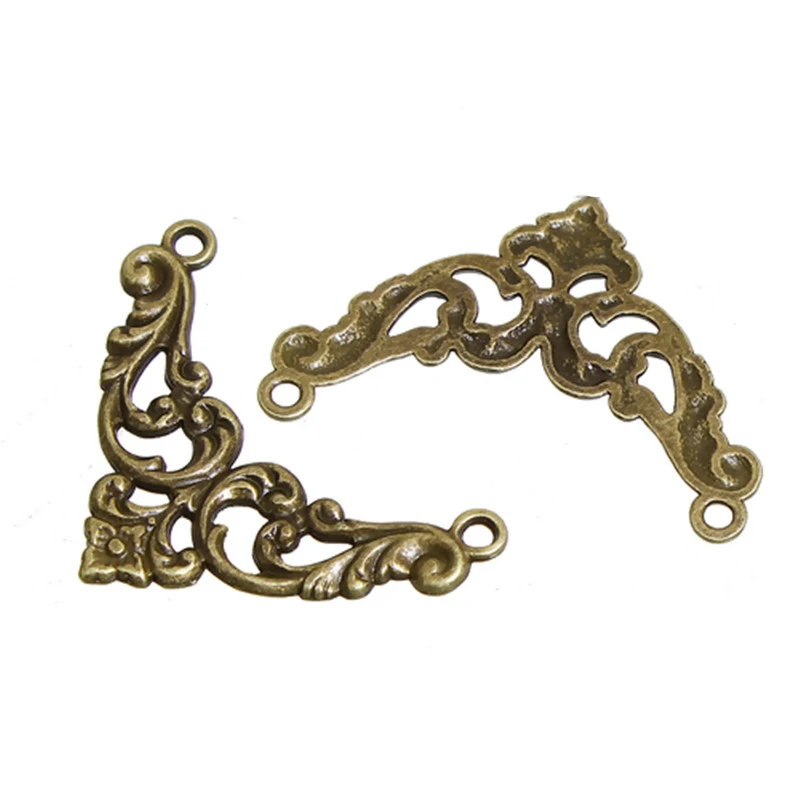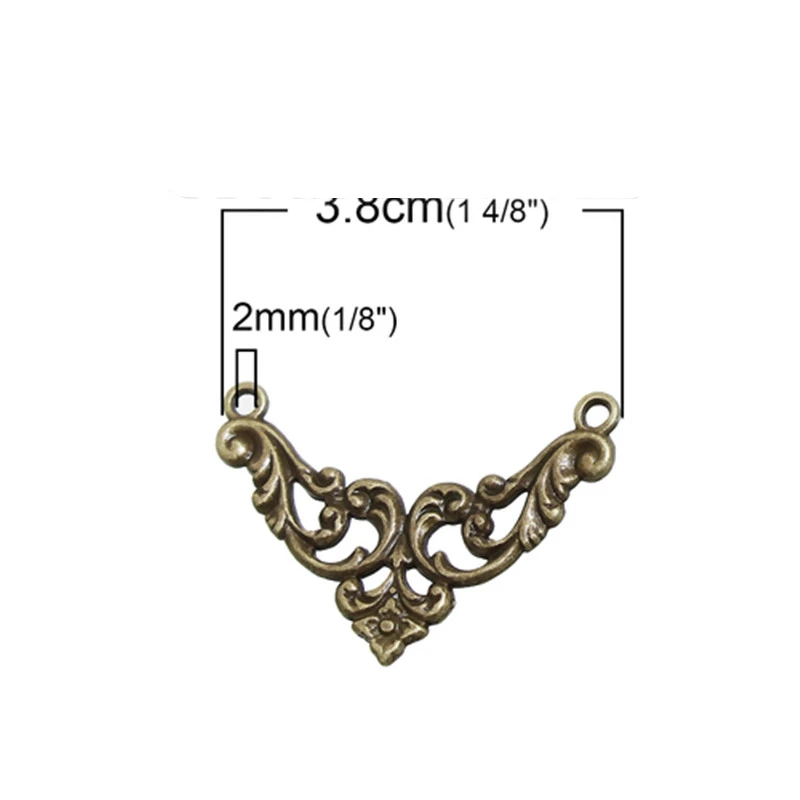 Соединители из сплава цинка DoreenBeads, треугольные соединители с бронзовой филигранью под старину, фурнитура для ювелирных изделий DIY, 38 мм (1 48 дюйма) x 27 мм (1 18 дюйма), 4 шт.