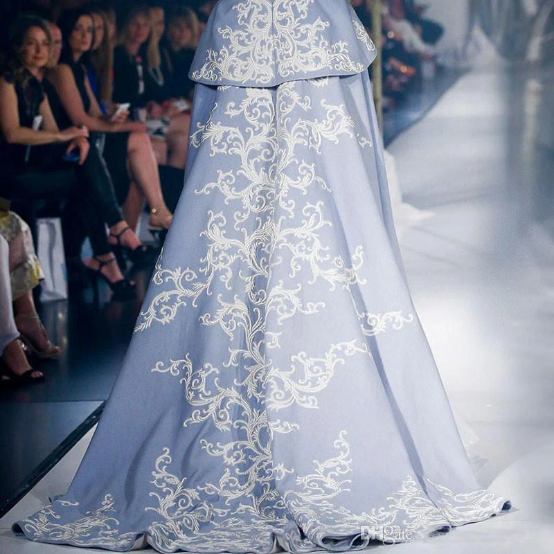 Свадебный жакет с запахом для невесты, свадебный плащ с высоким воротником и вышивкой, атласная светло-голубая накидка невесты, жакет, Болеро для невесты, 2020