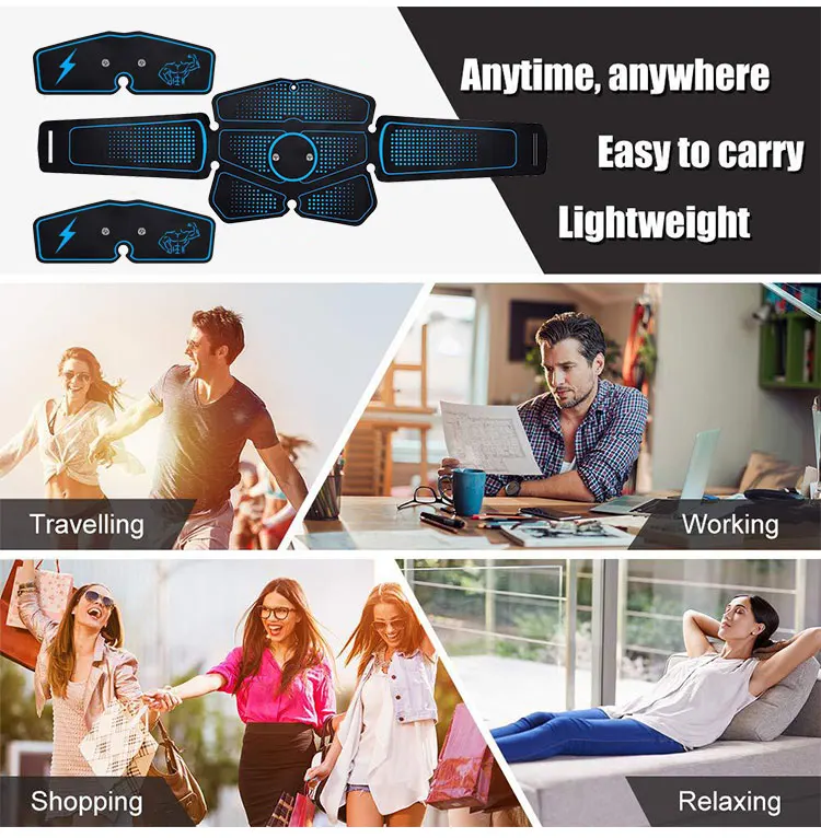 Package Includes3* Main unit, 1*Abdominal Belt, 2*Arm Stickers, 1*USB charging cable