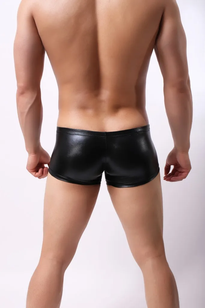 Мужские трусы AOMU, из искусственной кожи, ярко-ЗолотыечерныеЖелтыезеленые, кожаные шорты-боксеры