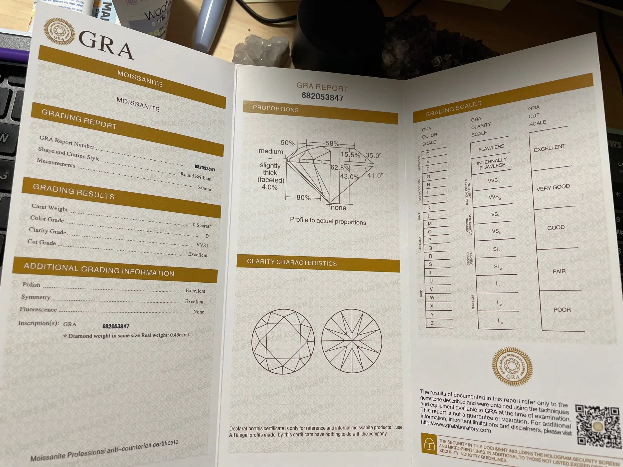 Очень красивый камушек Пришёл в твёрдой картонной коробке, обмотанной жестким, несдираемым скотчем, внутри которого был конверт, окутанный в пупврку, опять же с тем же скотчем Есть как я понимаю сертификат и карта, подтверждающие подлинность муссанита. Всё очень красиво. Проверить нет возможности, но я основваюсь на отзывах других - прикалдасный камешек, проходящий проверку. У других были коробочки, но так как я заказывала на скидках, то видимо мне не положили, что ж я понимаю продовца, сама, если надо будет куплю Продавец классный в общении:3