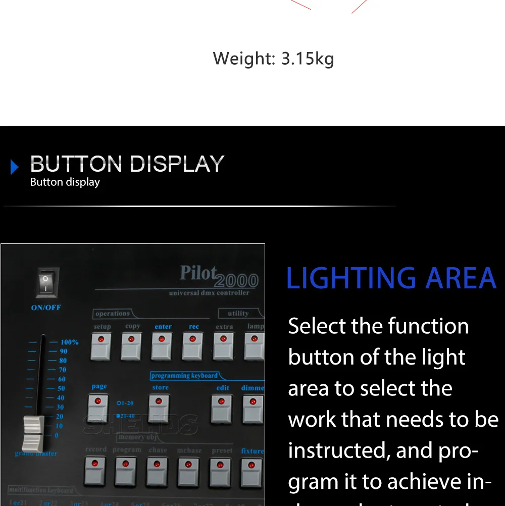Пульт управления SHEHDS DMX, Пилот 2000 512, регулятор каналов, сценический эффект, светильник, оборудование, 3 шпильки, светодиодный светильник с движущейся головкой