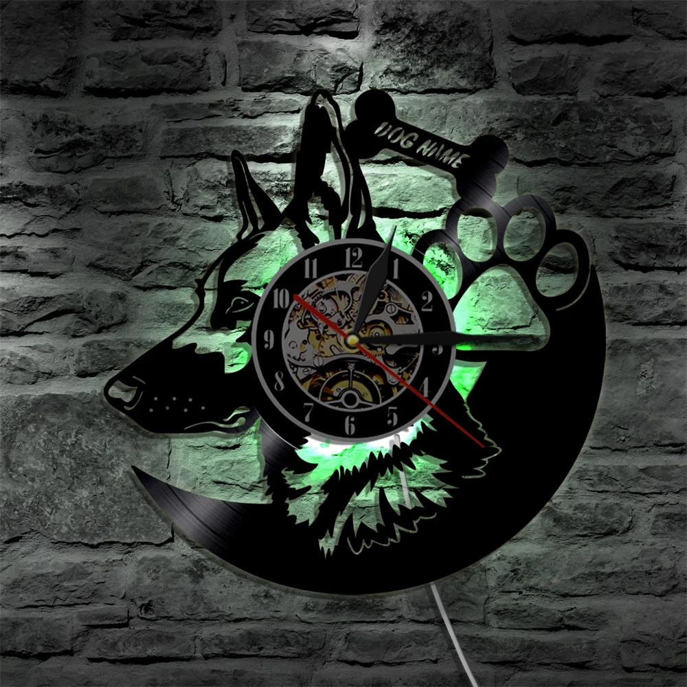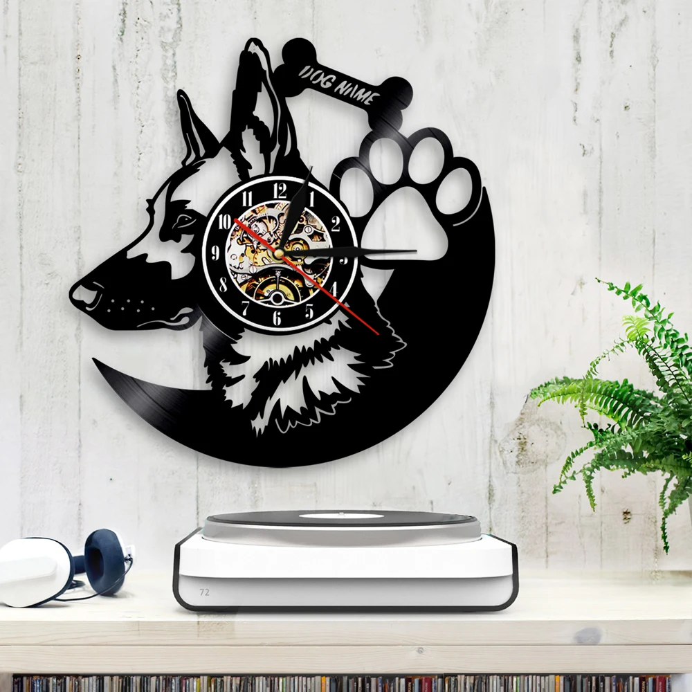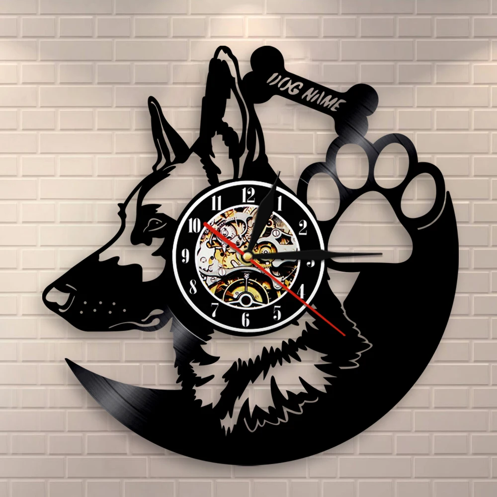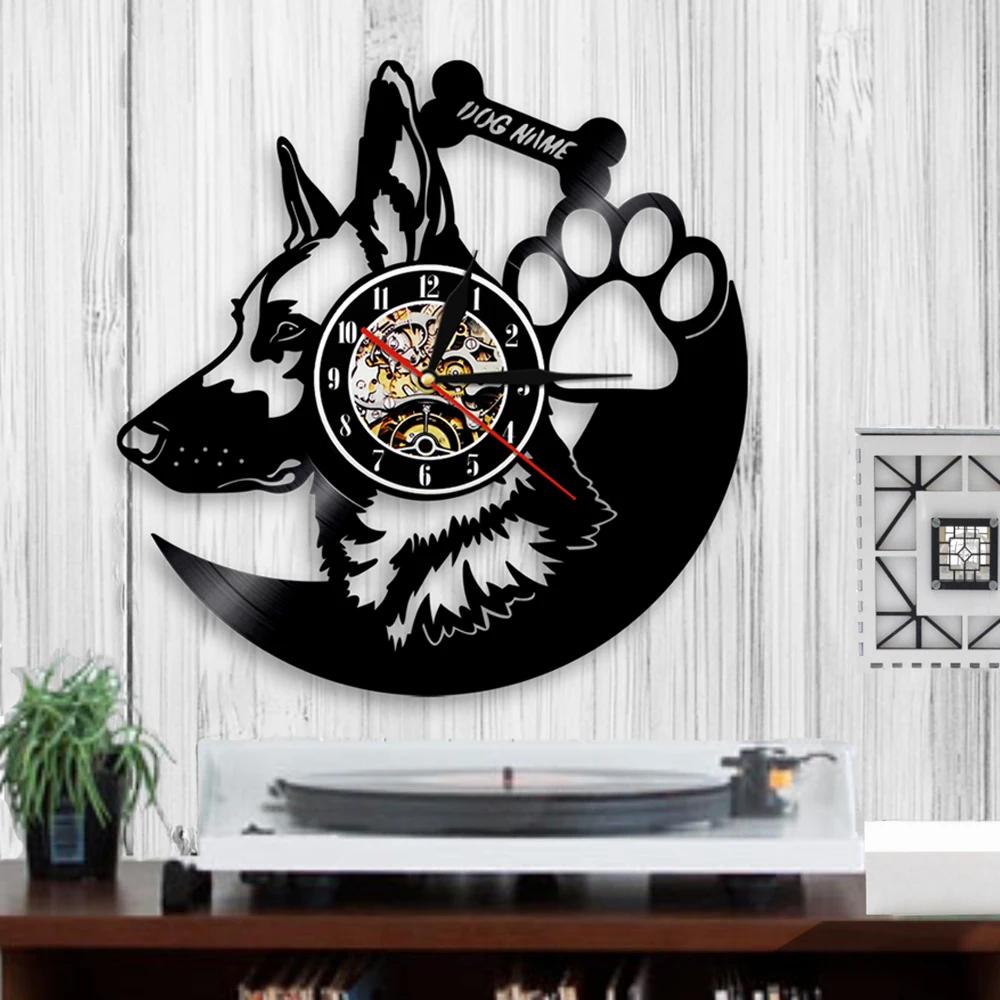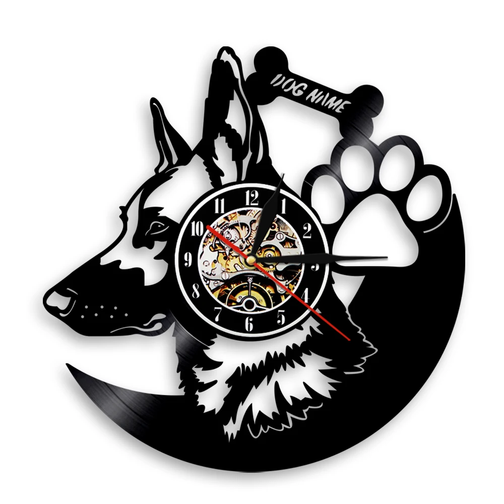 Настенные часы немецкой овчарки для домашнего декора, виниловые часы с изображением пород собак, винтажные часы с именем собаки на заказ, настенные часы в подарок для любителей собак