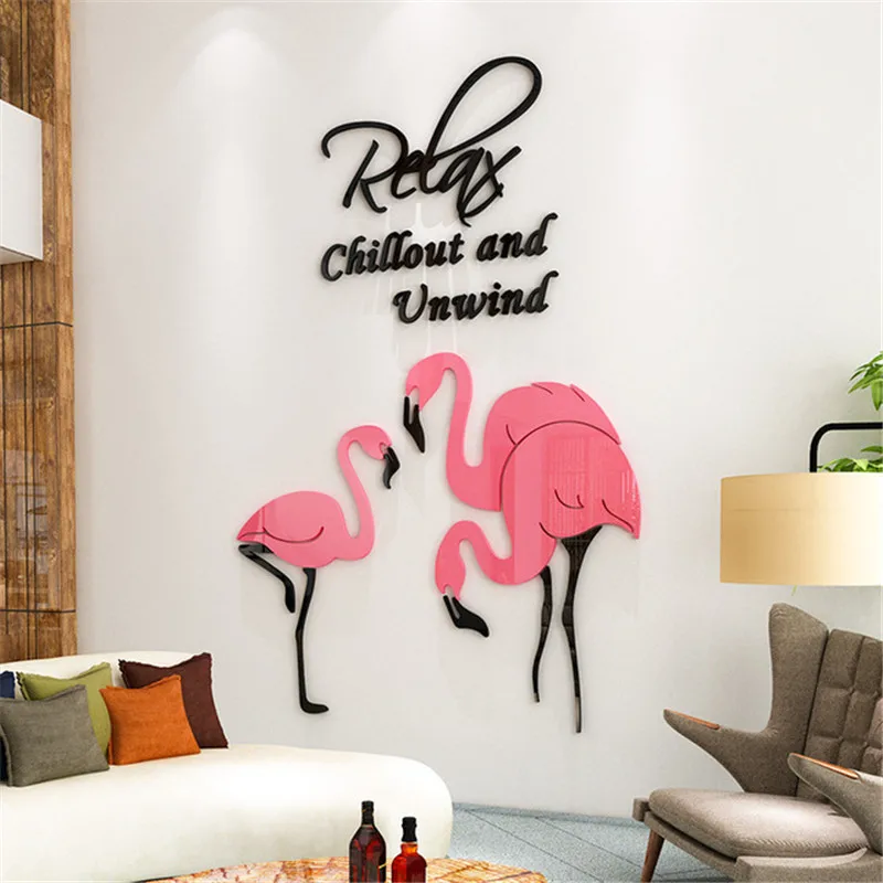 Скандинавская 3D Наклейка на стену фламинго для гостиной, детской к...