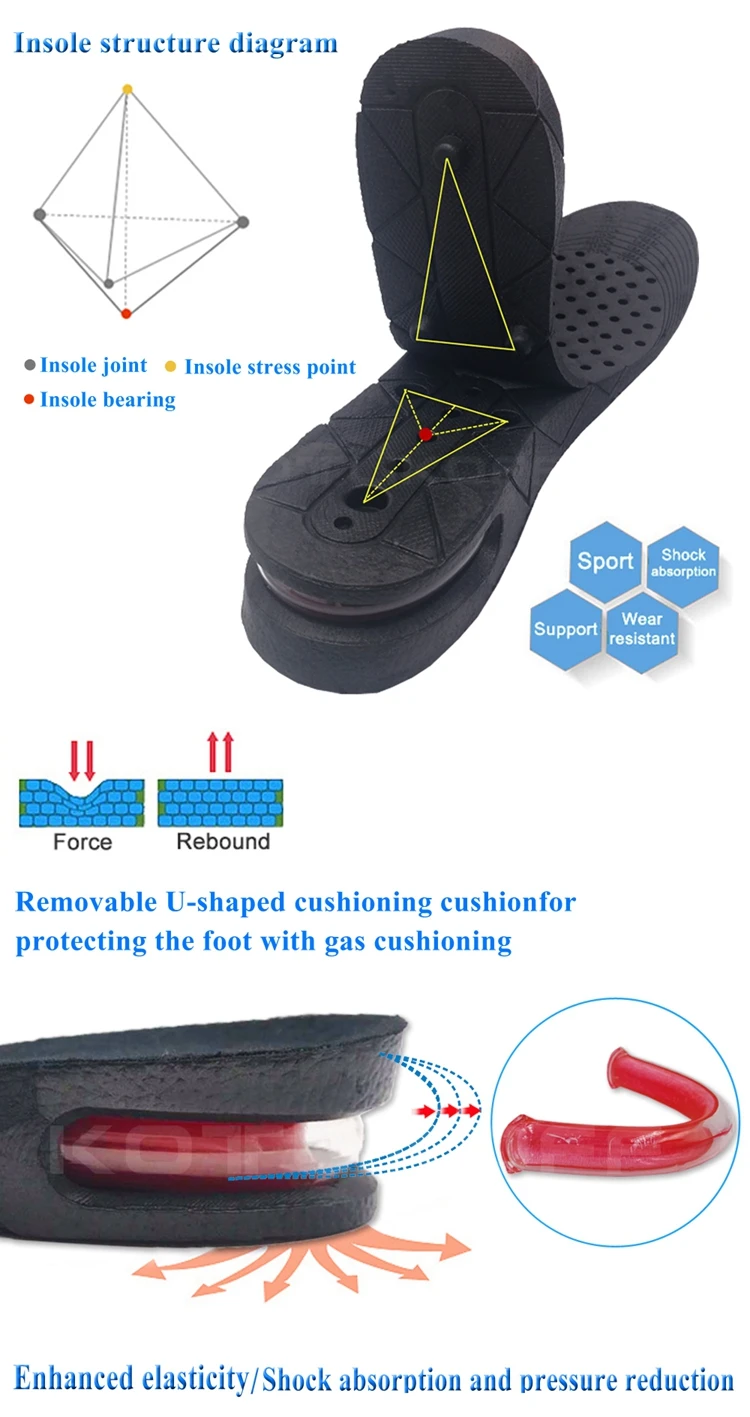 Увеличенная Высота: Добавьте высоту 3-9 см. Будь то ваша спортивная обувь, официальная или повседневная обувь, вы можете вставить их практически во все виды и выглядеть намного выше. Самое лучшее в том, что эти стельки для обуви на подъеме остаются скрытыми, так что никто никогда не узнает о секрете, скрывающем рост. Дышащий дизайн: стельки имеют амортизирующие колпачки, которые обеспечивают максимальный комфорт на каблуках и позволяют вам чувствовать себя расслабленным весь день. Максимальная толщина также ограничена оптимальным значением только для того, чтобы ваша обувь не была слишком плотной. Особенности: регулируемая высота, скрытый, удобный, ударопрочный, дышащий. Материал: ЭВА, волокно. Если есть какие-либо проблемы, когда вы получаете посылка, пожалуйста, свяжитесь с нами, прежде чем оставить какие-либо отзывы. Мы решим его для вас терпеливо. Посылка: 1 пара увеличенных стелек