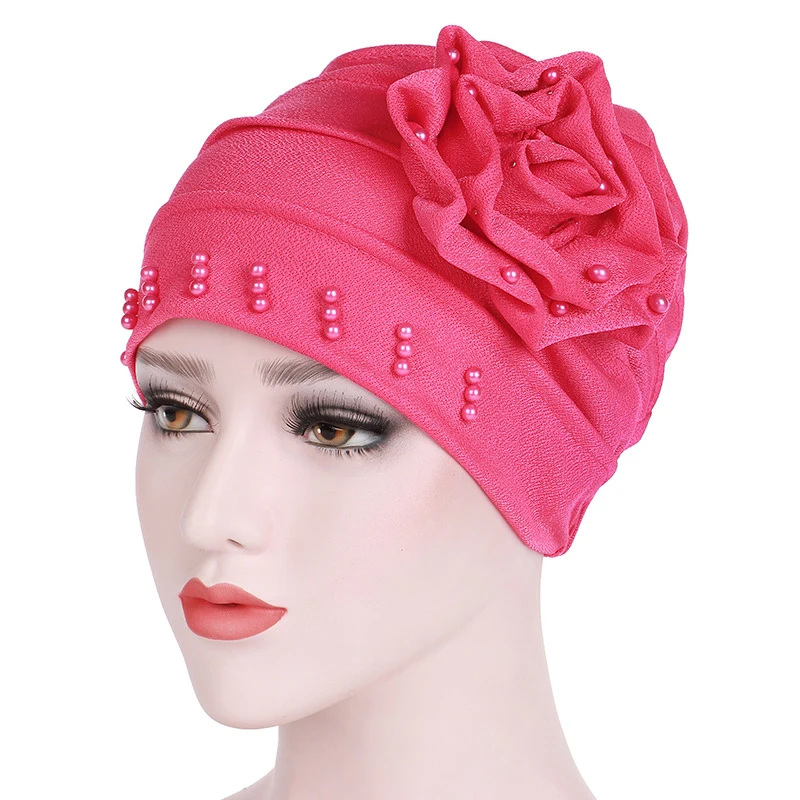 Модные цветочные мусульманские хиджаб шапки Твердые арабские обёрточная голова внутренние хиджабы хлопковые бусины женский тюрбан для женщин исламский шарф шапка