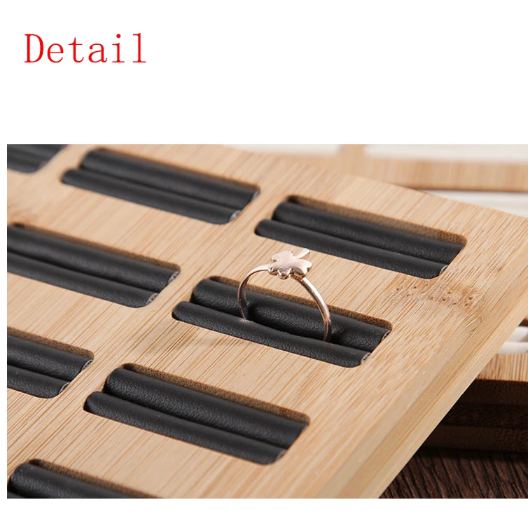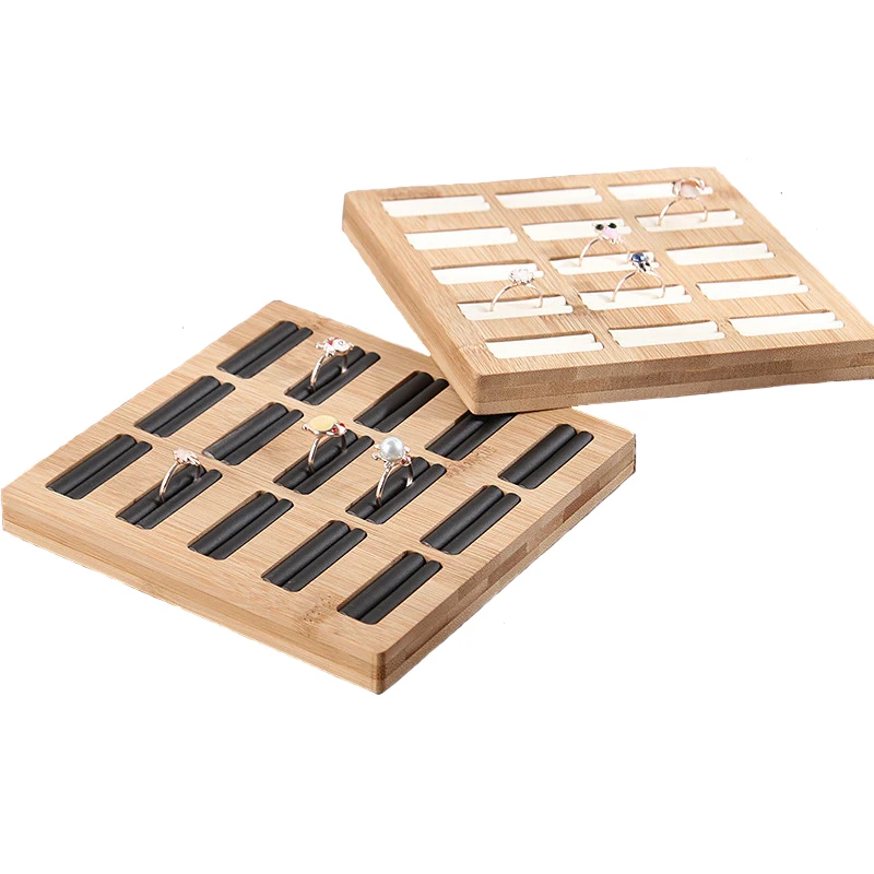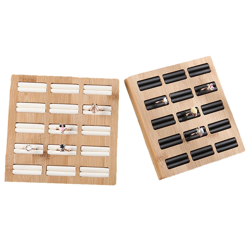 Поднос для хранения колец, бамбуковый лоток для демонстрации ювелирных изделий из ПУбархата, 15 ячеек, подставка-органайзер для демонстрации колец