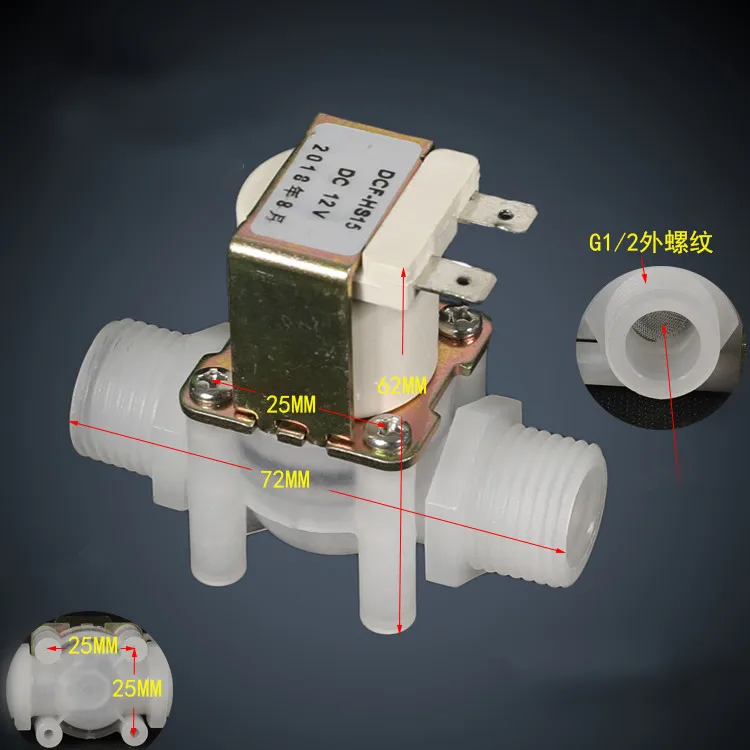 1 шт., пластиковый электромагнитный регулирующий клапан для воды, 12 В, 24 В, 220 В, нормально закрытый клапан, 12 дюйма