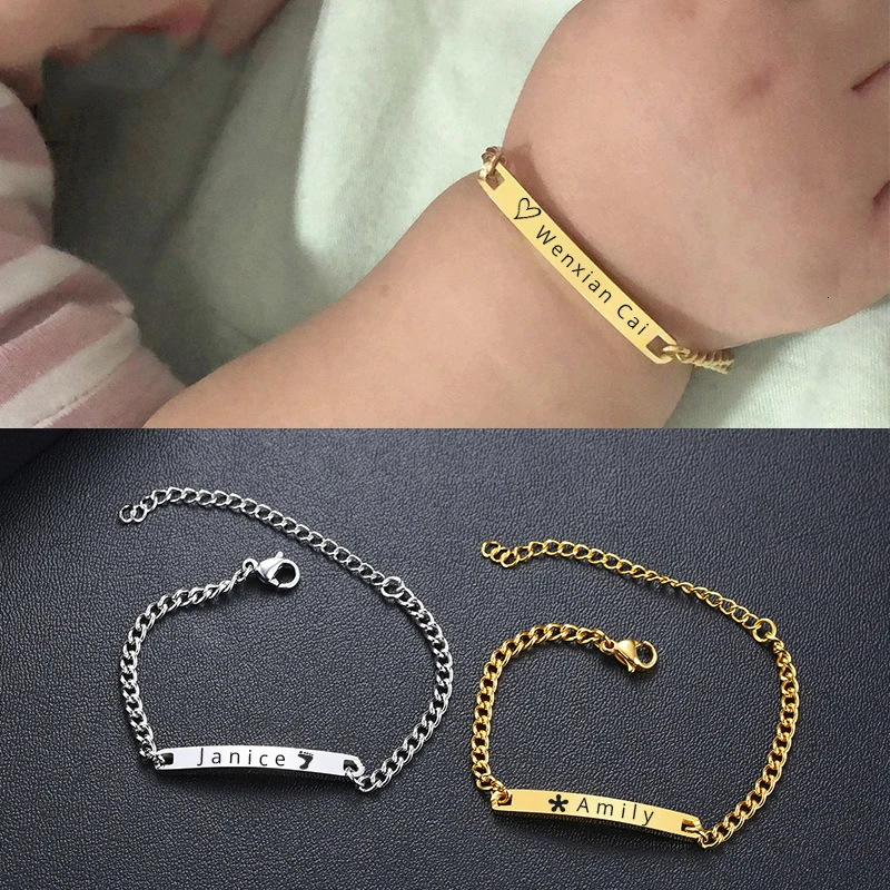 Детские браслеты из нержавеющей стали, с именем на заказ