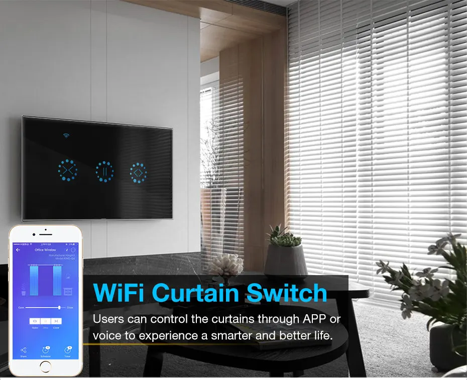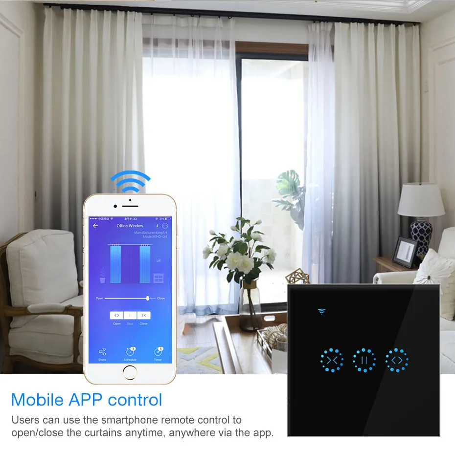 App controlPercentage Open / Close curtain Scheduled / Timer / Shares