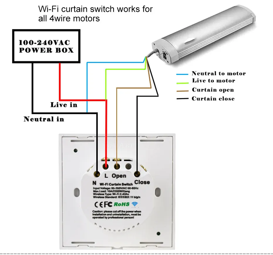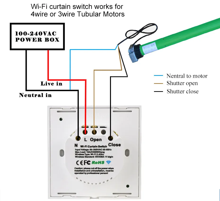 Этот смарт-переключатель Wi-Fi должен быть подключен как с помощью прямой, так и с помощью нейтральной линии, отключите питание при монтаже и без установки, работайте от профессионального человека.