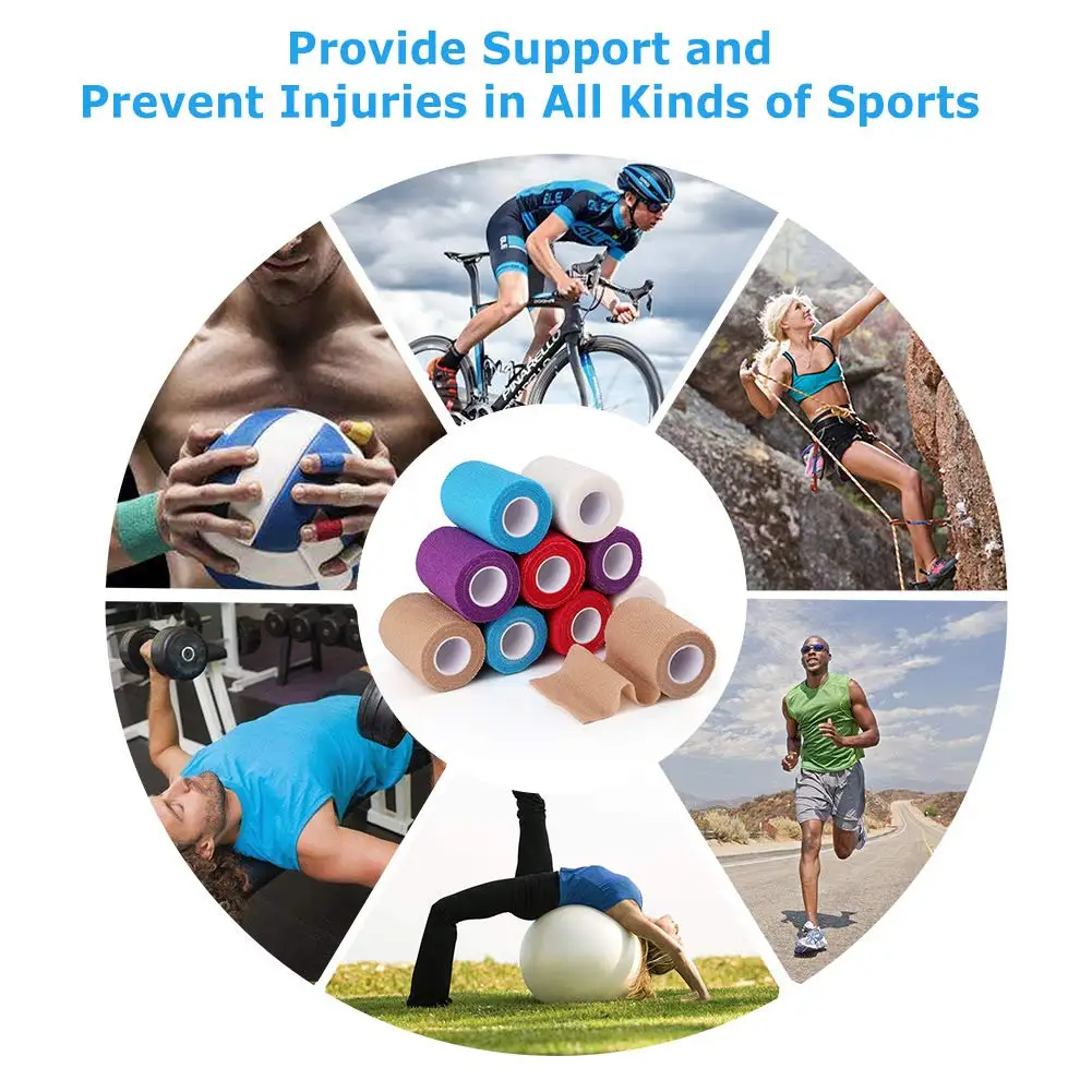 ★Самоклеящийся бандаж: Бандажное обертывание не требует раздражающих клеев и не прилипает к другим поверхностям, таким как волосы или кожа; Надежная когезионная обертка не ослабится от пота или воды★Высокая Эластичность: эластичное соотношение свыше 2,0, обеспечивающее регулируемое усилие стягивания, улучшенные характеристики покрытия. Необходимая повязка первой помощи для профессионального, домашнего здравоохранения или личного использования.★Дышащий и удобный: самоклеящаяся повязка из нетканого материала, с кожей можно напрямую контактировать с воздухом, а пот и влага легко испаряются, очень удобные, дышащие, легкий и мягкий, меньше раздражает кожу.★Простота в использовании: самоклеящийся когезивный бинт легко рвется без ножниц, просто рвется рукой и обертывает запястья, пальцы, лодыжку, спину, колено и другие зоны тела.★Широкое применение: спортивная повязка помогает закрепить бандажную повязку s, снять отеки и способствует заживлению, идеально подходит для растяжений и растяжений; Повязку Vet можно также использовать для повязки на рану s домашних животных, И спортивное снаряжение, такое как бейсбол, ручка ракетки и т. д., для предотвращения поглощения пота и пота.