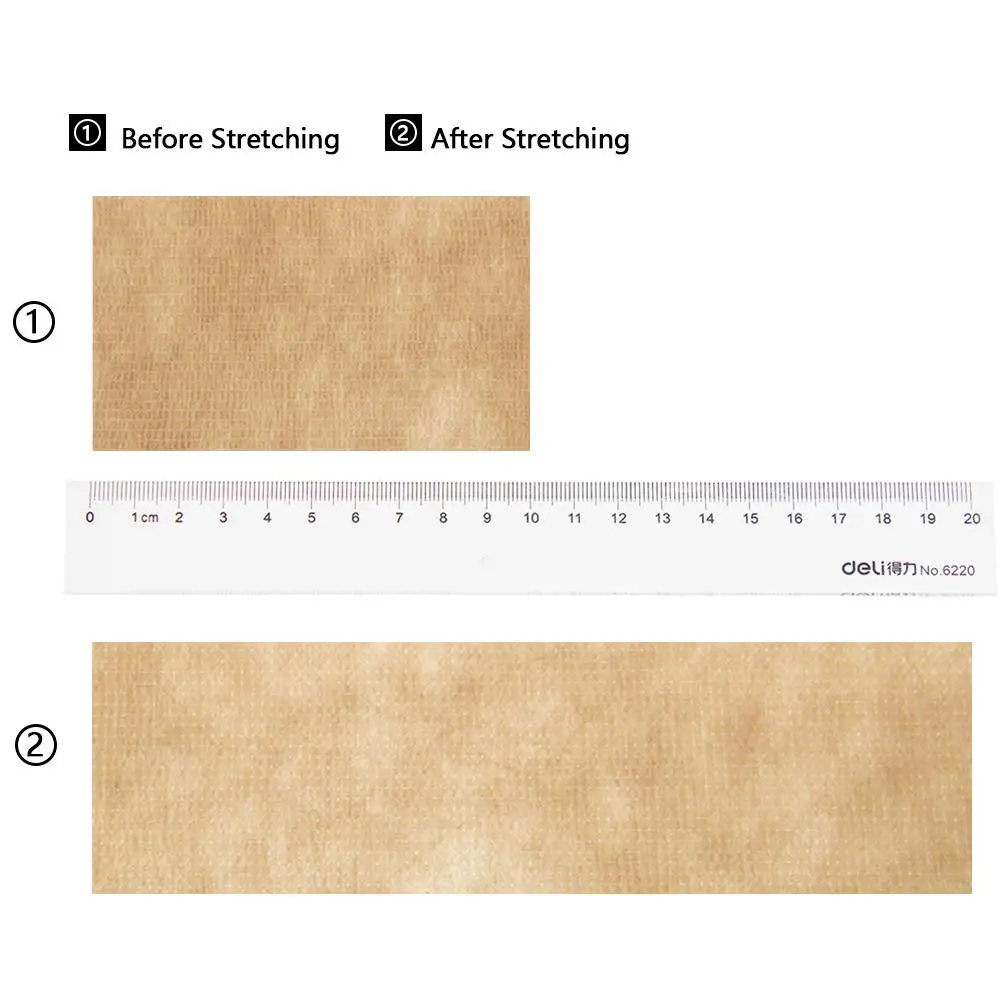 Один рулон:1 дюйм x 5 ярдов (после растяжения)-2,5 см * 4,5 м2 дюйма x 5 ярдов (после растяжения)-5 см * 4,5 м3 дюйма x 5 ярдов (после растяжения)-7,5 см * 4,5 м4 дюйма x 5 ярдов (после растяжения)-10 см * 4,5 м6 дюймов x 5 ярдов (после растяжения)-15 см * 4,5 м