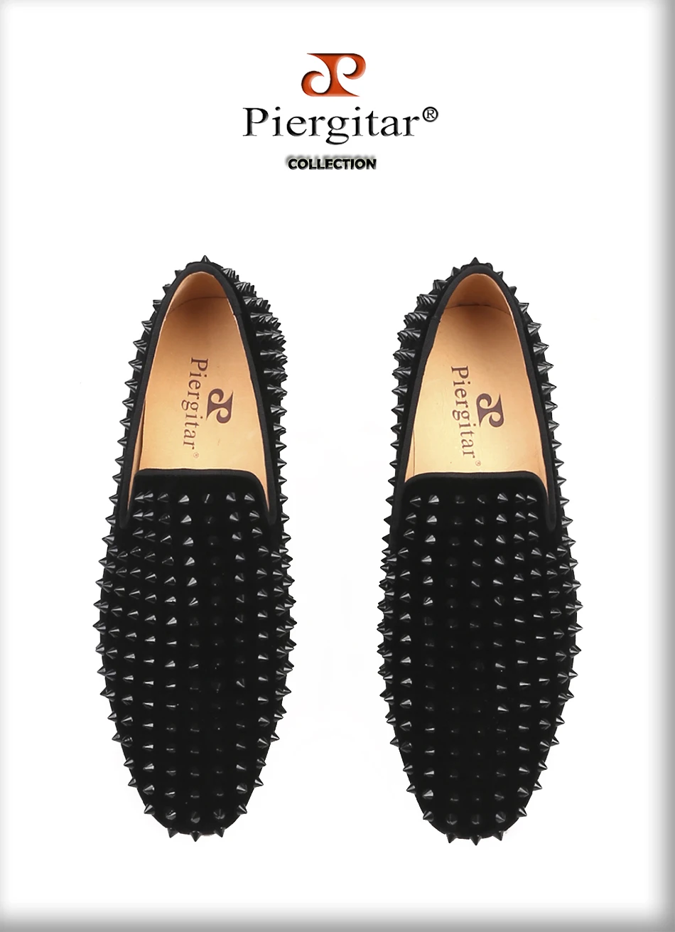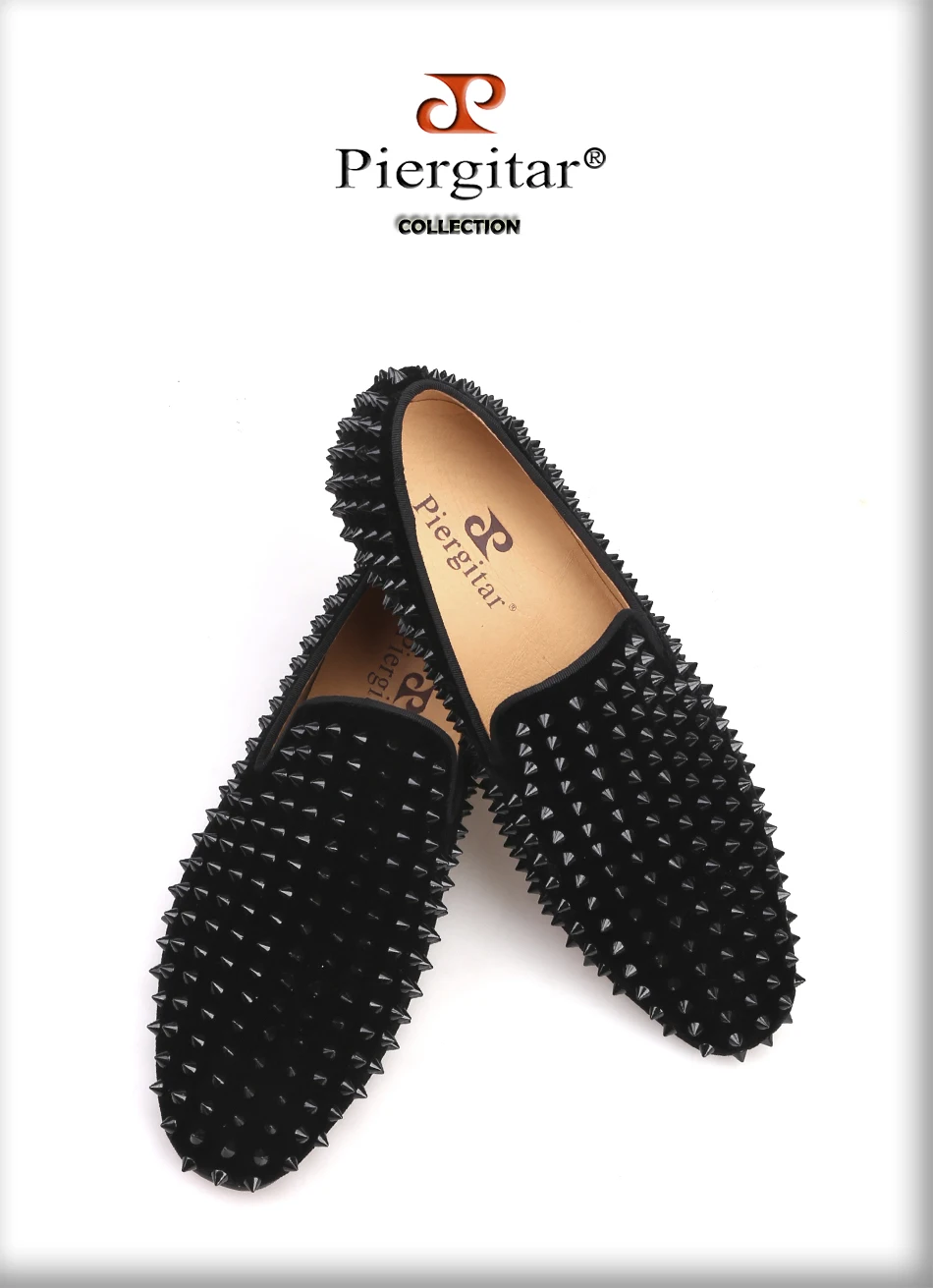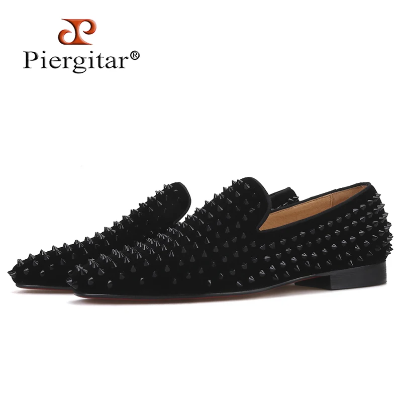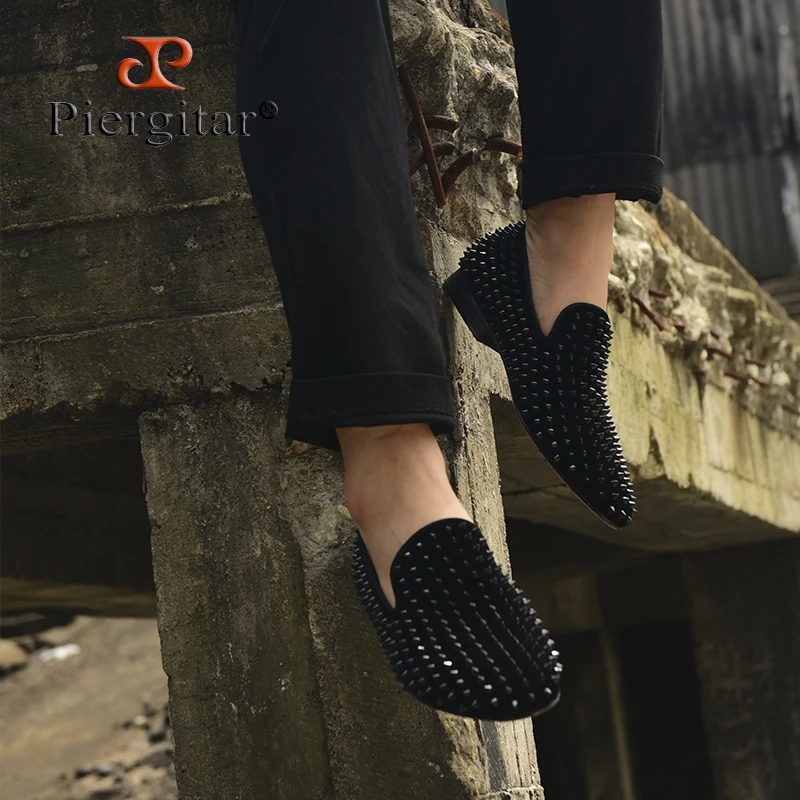 Piergitar 2019 Мужская бархатная обувь ручной работы с черными шипа...