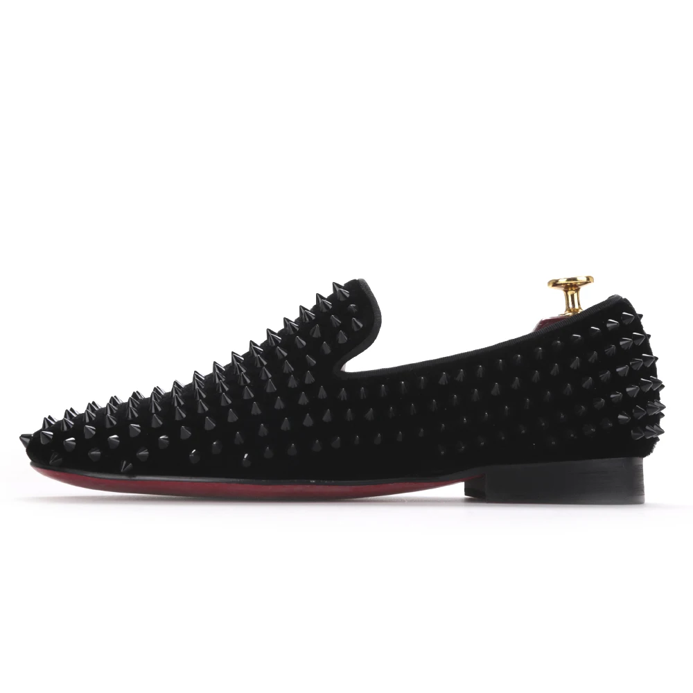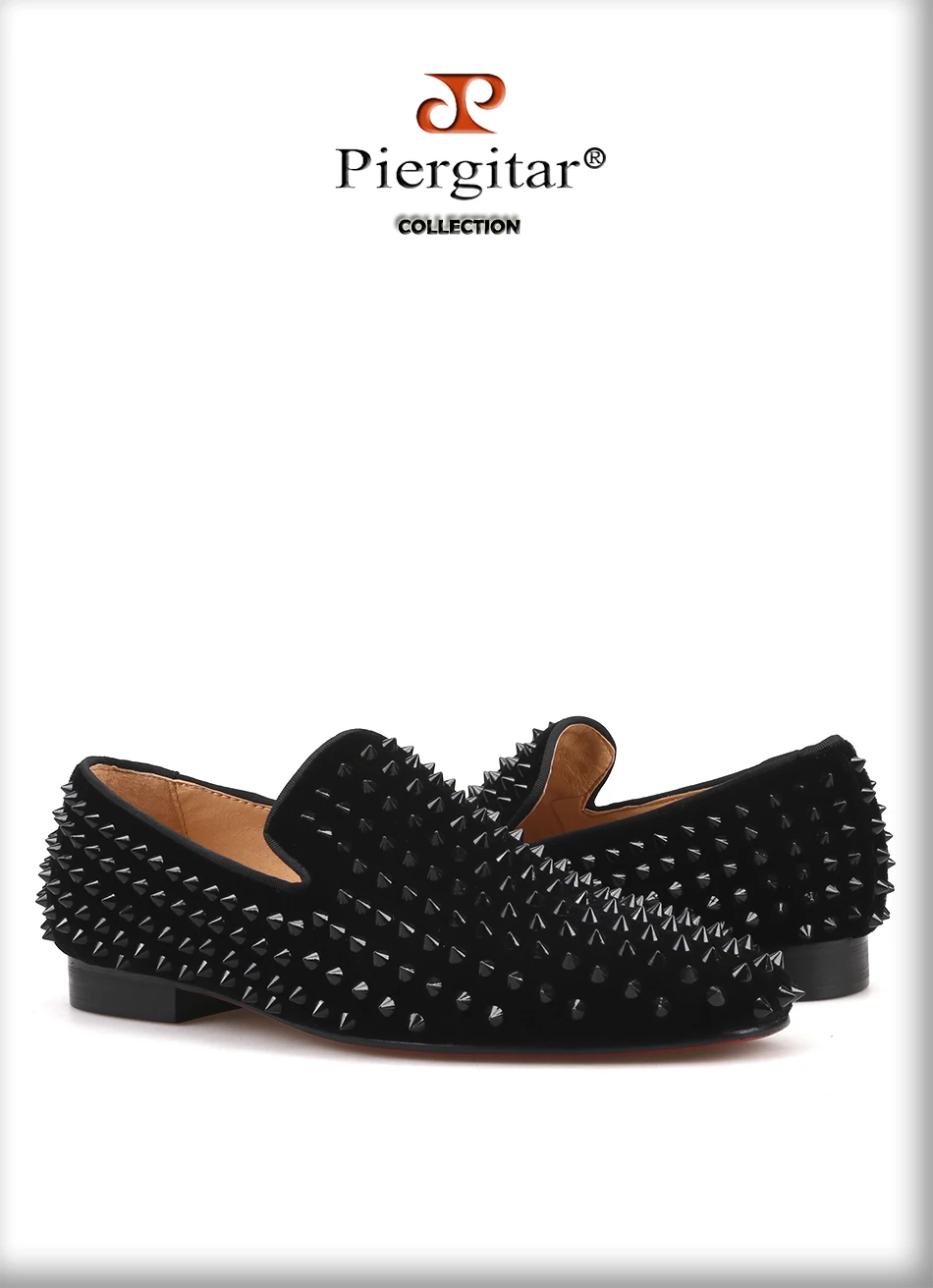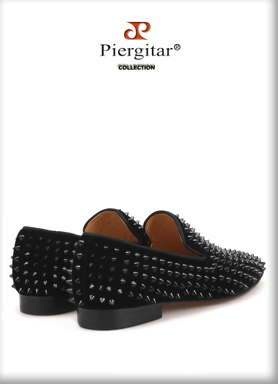 Piergitar 2019 Мужская бархатная обувь ручной работы с черными шипа...