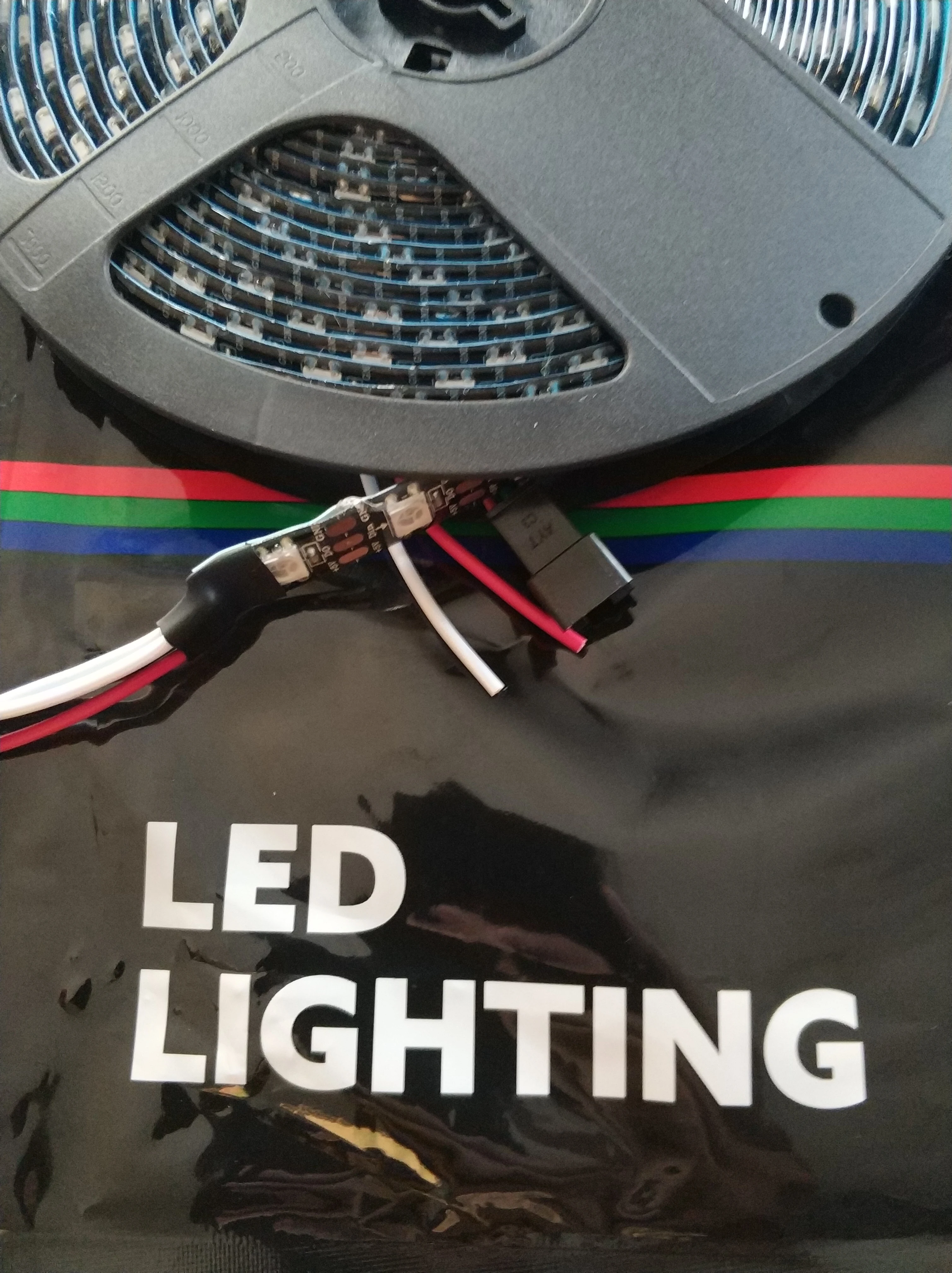Лента приехала за 15 дней в Киев. Упаковка в блистере, аккуратно. В комплекте есть разъемы с кабелем для подключения ленты к источнику.
