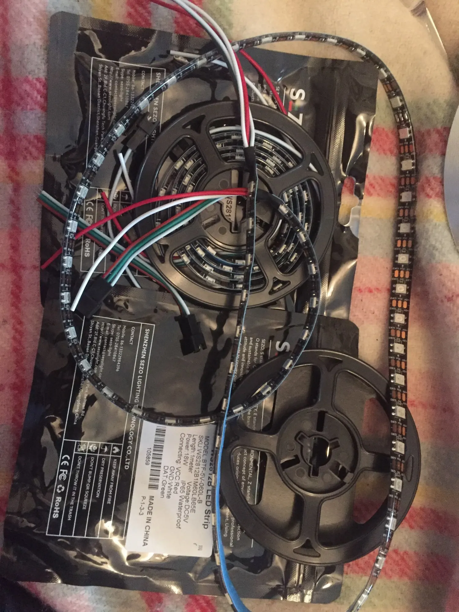 Лента приехала в катушке, упакованную в диэлектрические. пакет. Лента работает, всё в порядке. Длина ленты соответствует заказанной. В связи с китайским новым годом летела в Москву около полутора месяца.