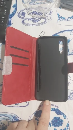На вид и на ощупь соответствует описанию,под камеру идеальное окошко на Самсунг М 21,но есть брак-в районе застежки чехол,где кнопка включения, не садится полностью на телефон и чтобы нажать на кнопку сильно нужно прижимать и еще нужно попасть!На фото видно что торчит,по сравнению с другим чехлом