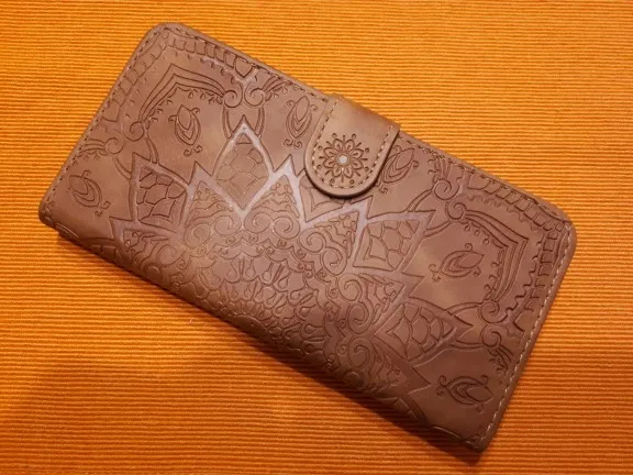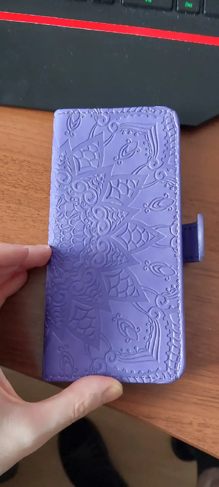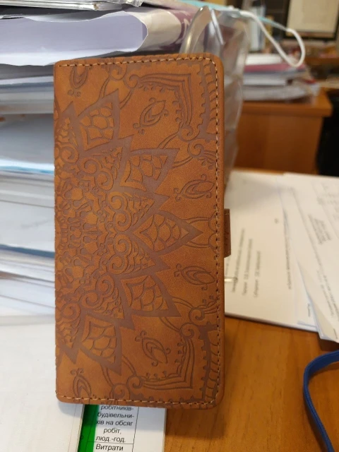 чехол прекрасный, заказывала уже такой для мамы, она год с ним проходила, я решила заказать еще так как уж очень он удобный для нее есть все необходимое пара отверстий для карт, место куда можно сунуть наличку, предыдущий функционально целый, но внешне немного поистрепался. прекрепляю фото нового чехла и старого через 1 год активной эксплуатации